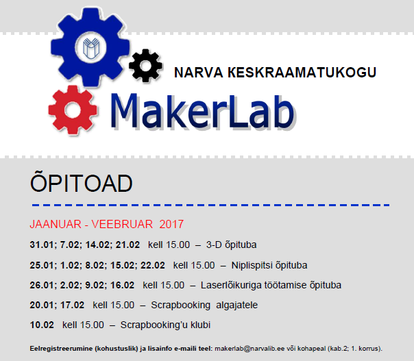 Lisainfo ja ruumi broneerimine: tel. 3592415 või tehnika@narvalib.ee