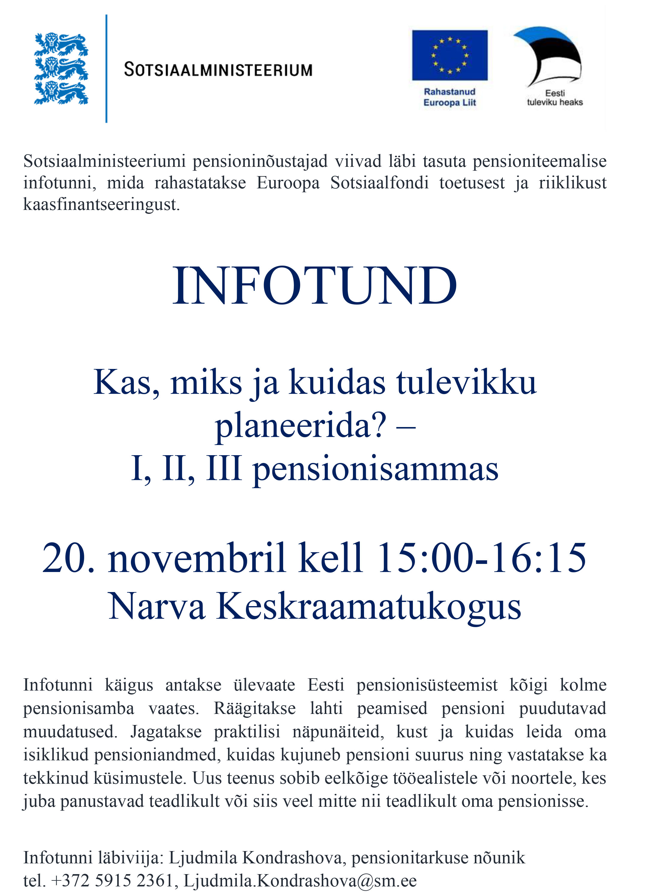 Laupäeval, 25. novembril kl 12.00, Narva Keskraamatukogus Malmi 8.