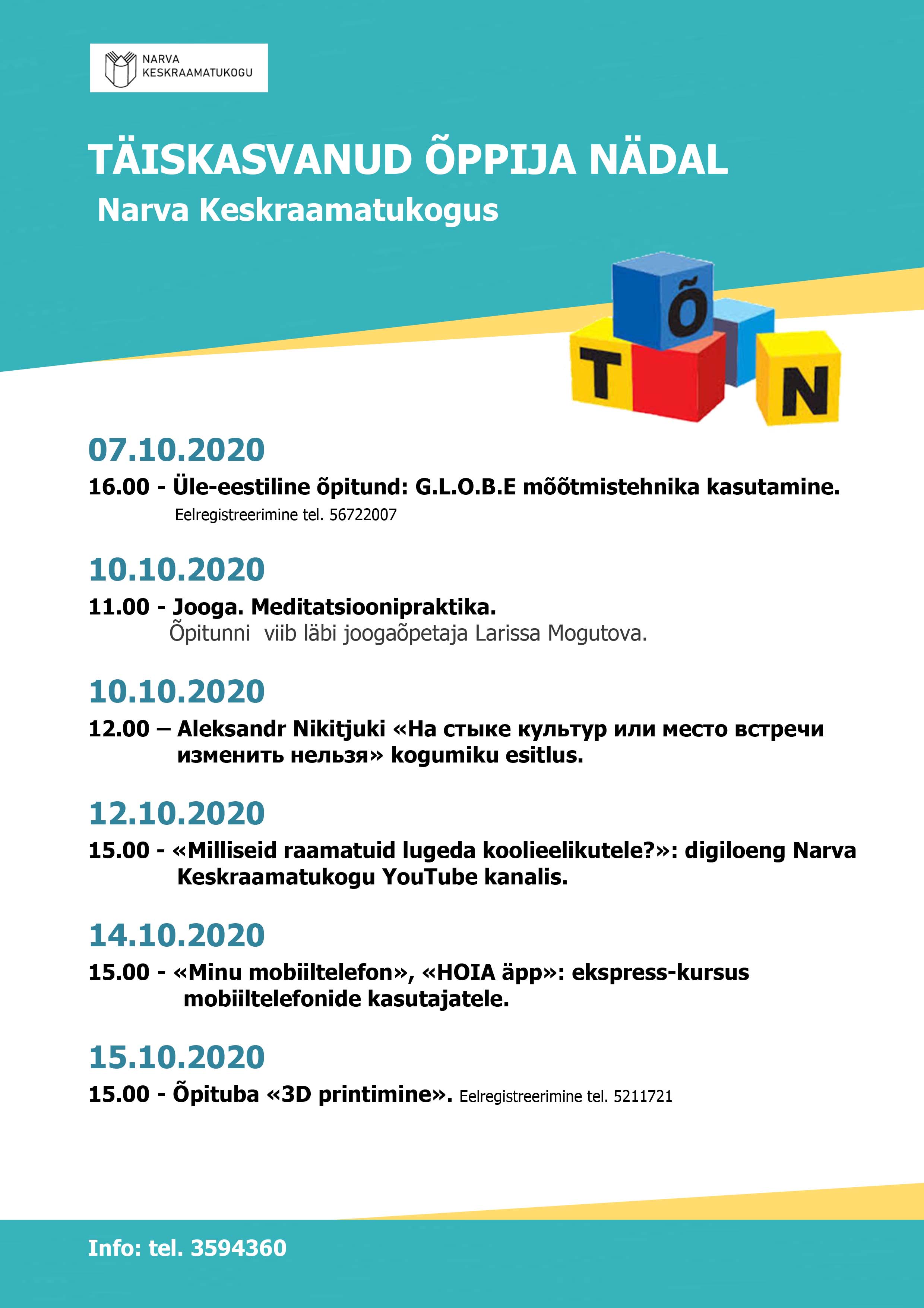Narva Keskraamatukogu kutsub teid osalema üle-eestilises õpitunnis "G.L.O.B.E mõõtmistehnika kasutamine", mis toimub Narva Keksraamatukogu MakerLab-is, 07.10.2020 kell 16.00