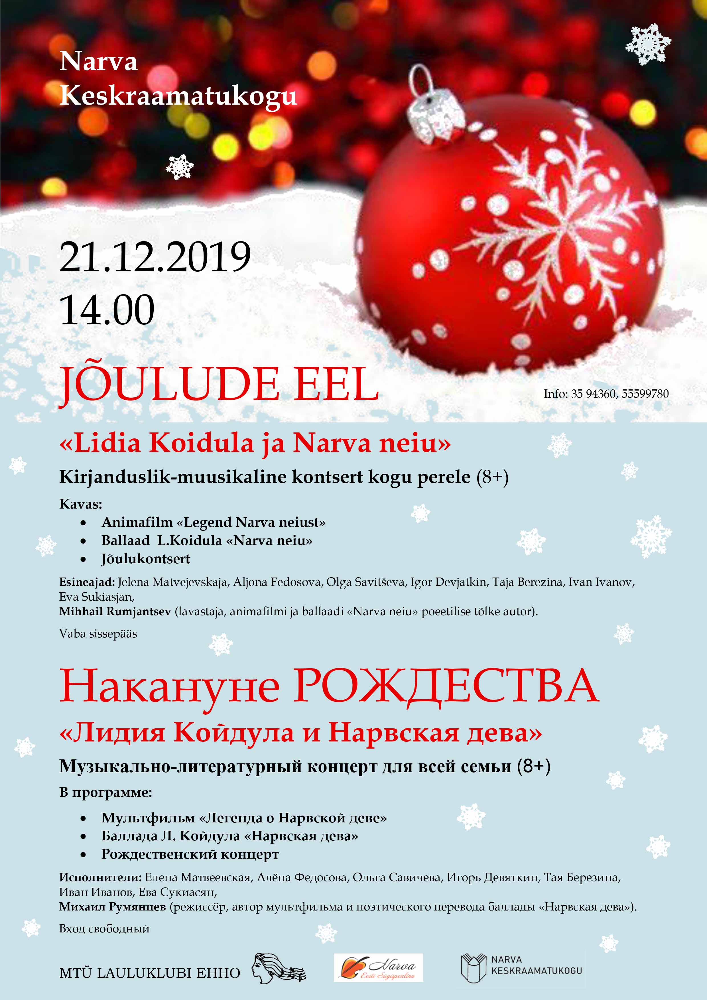 Laupäeval, 14. detsembril kl 12.00, Narva Keskraamatukogus (Malmi 8).