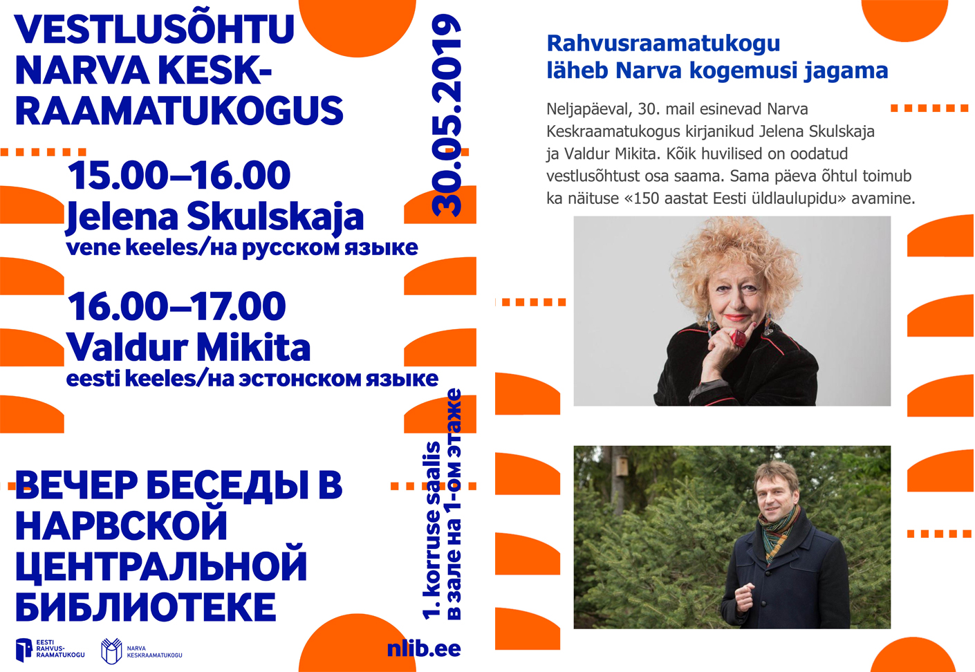 Võtame kaasa oma teadmised ja kogemused, mida Narvas kolleegidega jagada. Kutsume kohale kirjanikud Jelena Skulskaja ja Valdur Mikita, kelle vestlusõhtule on kõik huvilised oodatud ja võtame kaasa meie kogudel põhineva näituse üldlaulupidude ajaloost ning loomulikult hea tuju!