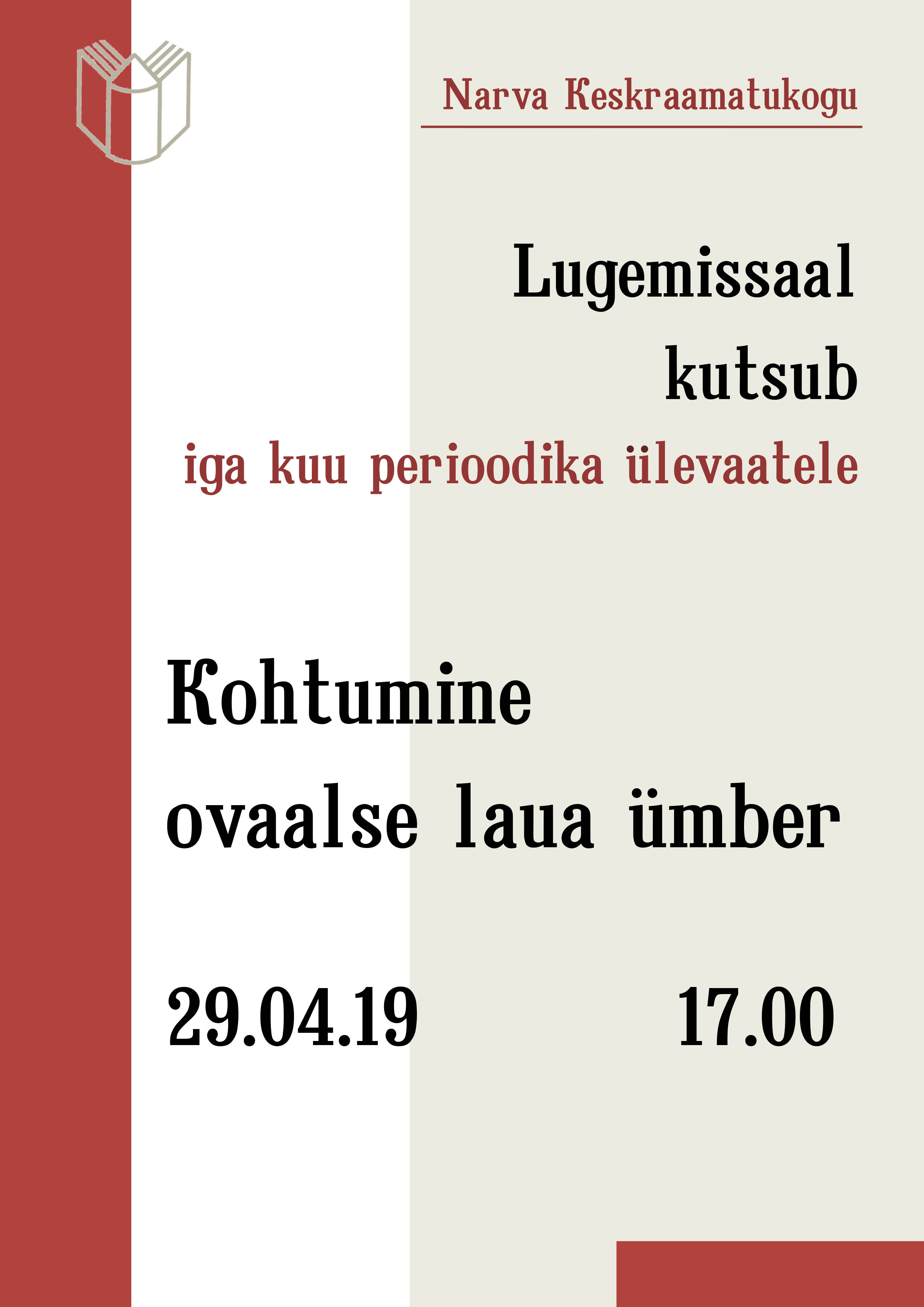 Laupäeval, 20. aprillil kl 12.00, Narva Keskraamatukogus (Malmi 8).