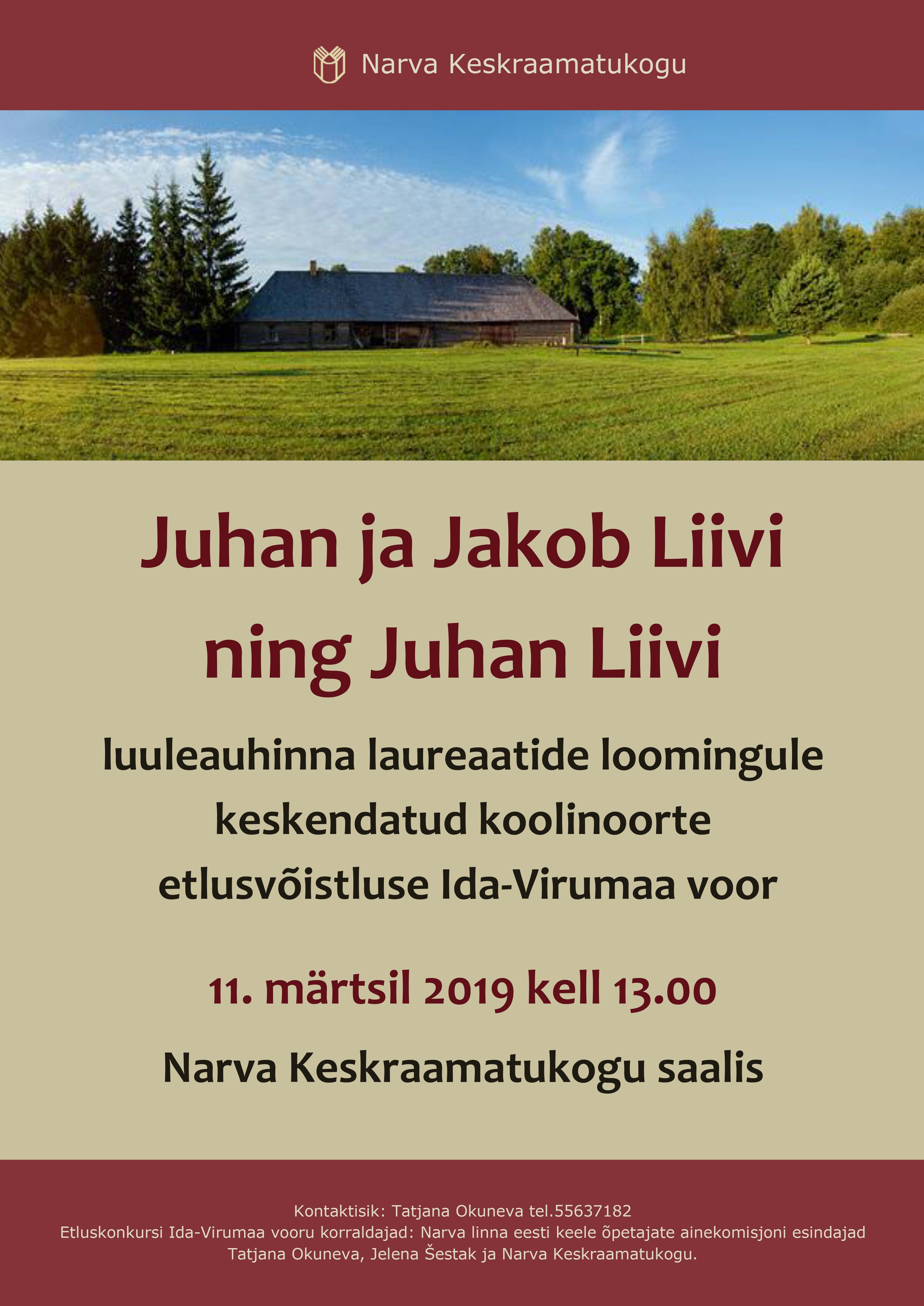Info: Narva Keskraamatukogu Lugemissaal tel. 35 95545