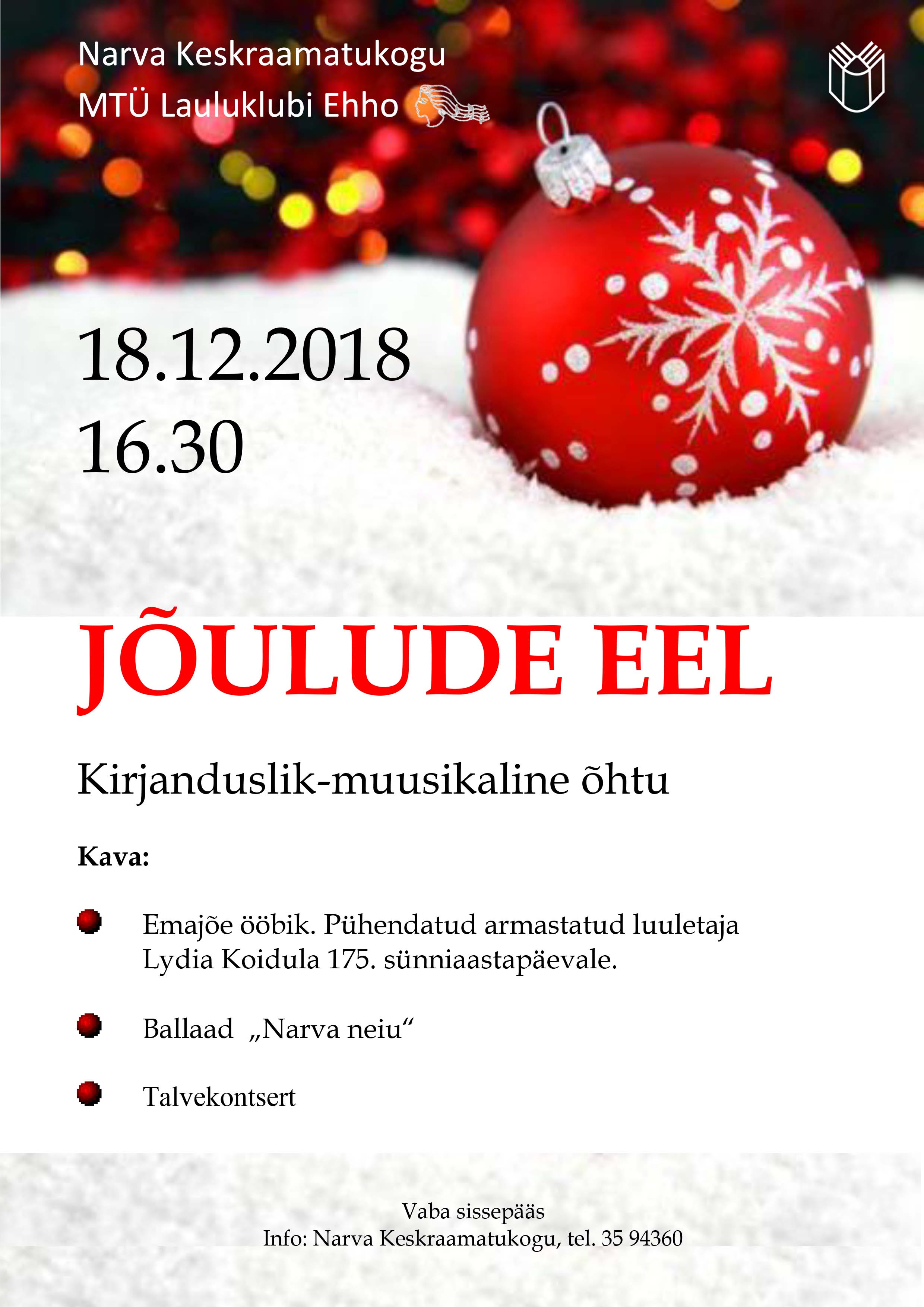 Laupäeval, 15. detsembril kl 12.00, Narva Keskraamatukogus (Malmi 8).