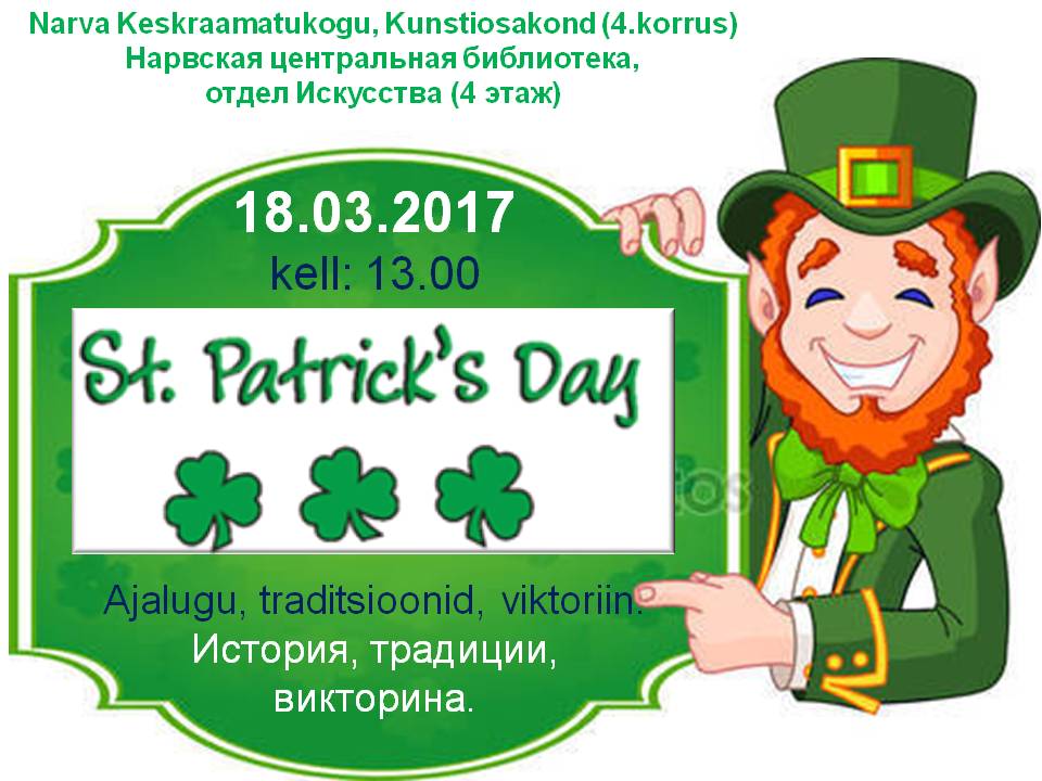 В разных городах мира — в Нью-Йорке, Буэнос-Айресе, Мельбурне… празднуют день святого Патрика. Яркие шествия, парады и гуляния людей, одетых в зеленое (национальный цвет Ирландии) заметны всюду, где проживают ирландцы. В петлицу в этот день вдевают клевер, символ Ирландии и удачи.