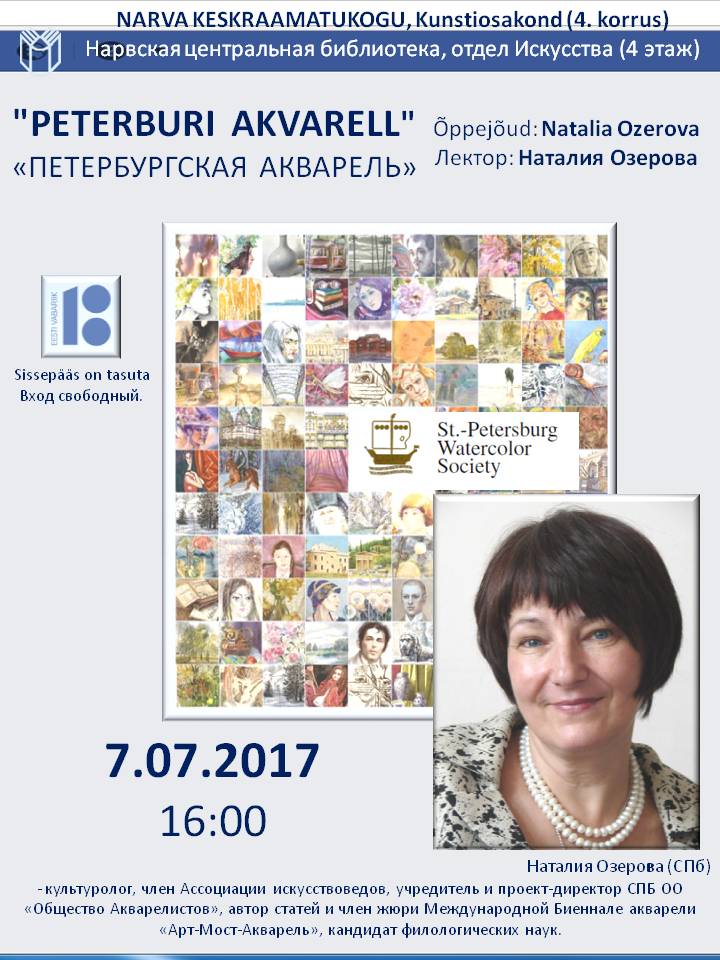 Наталия Озерова (СПб) - культуролог, член Ассоциации искусствоведов, учредитель и проект-директор СПБ ОО «Общество Акварелистов», автор статей и член жюри Международной Биеннале акварели «Арт-Мост-Акварель», кандидат филологических наук.