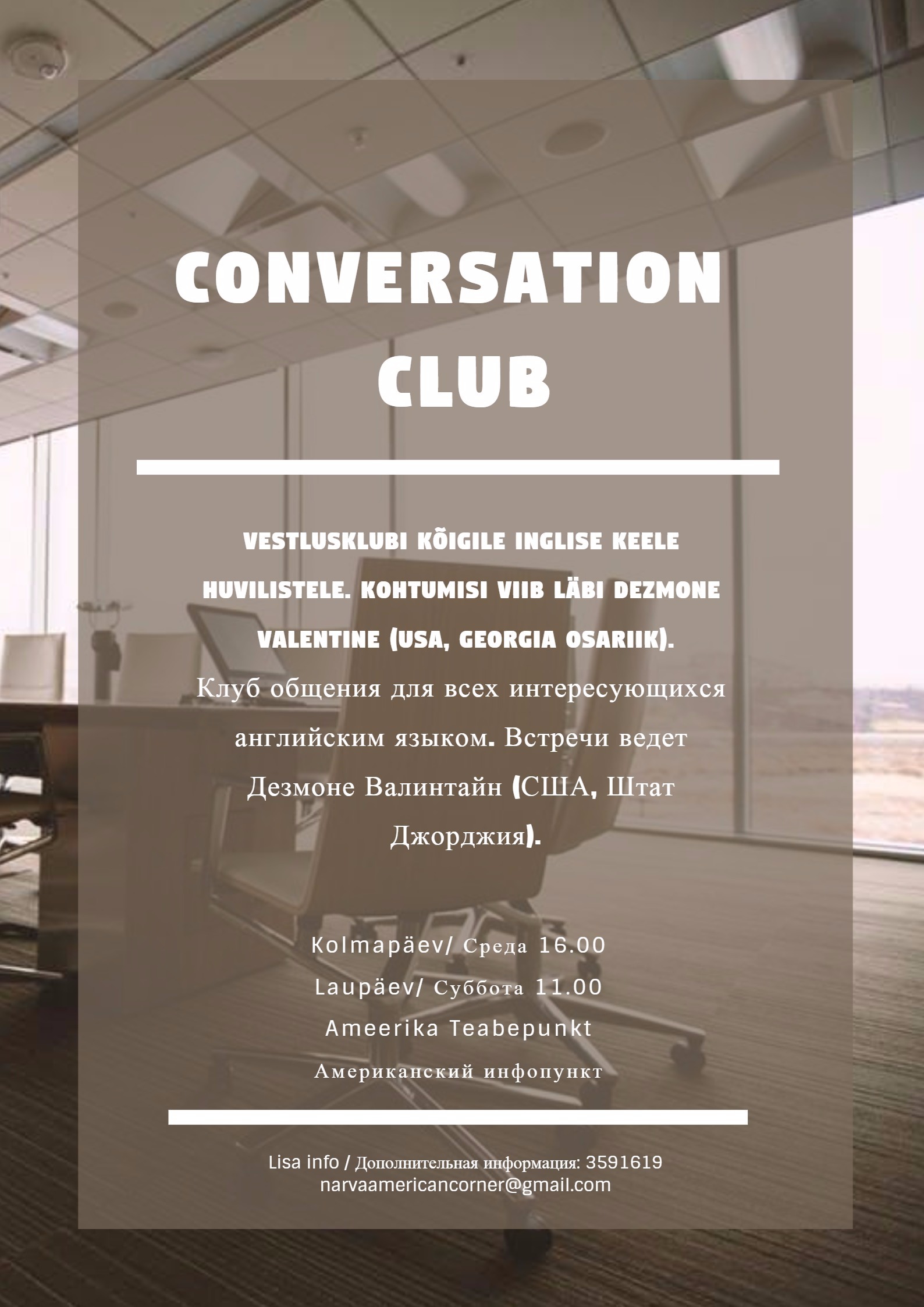 Клуб общения для всех интересующихся английским языком. Встречи ведет Дезмоне Валинтайн (США, Штат Джорджия).