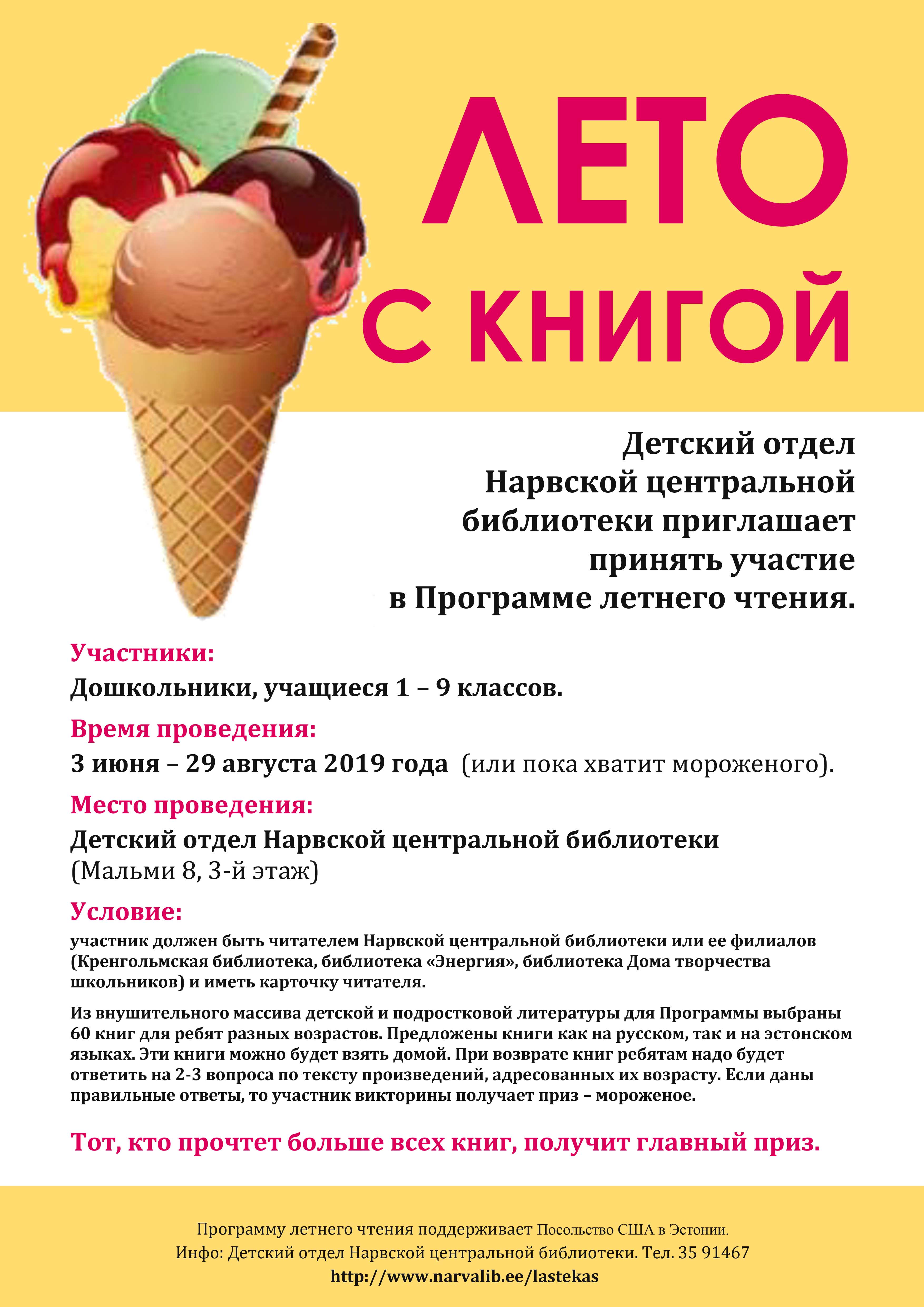 Всех, кто не хочет расставаться с книгой, кто мечтает почитать и пофантазировать с любимыми героями, приглашаем в Нарвскую центральную библиотеку и предлагаем принять участие в Программе летнего чтения.