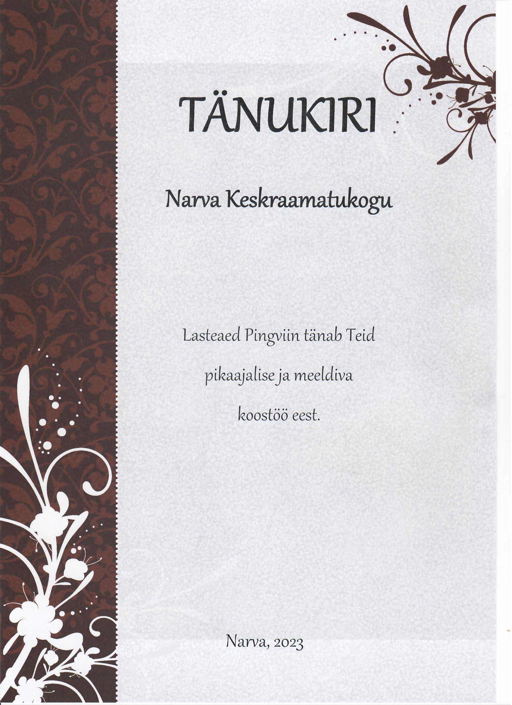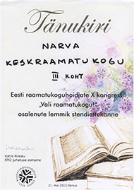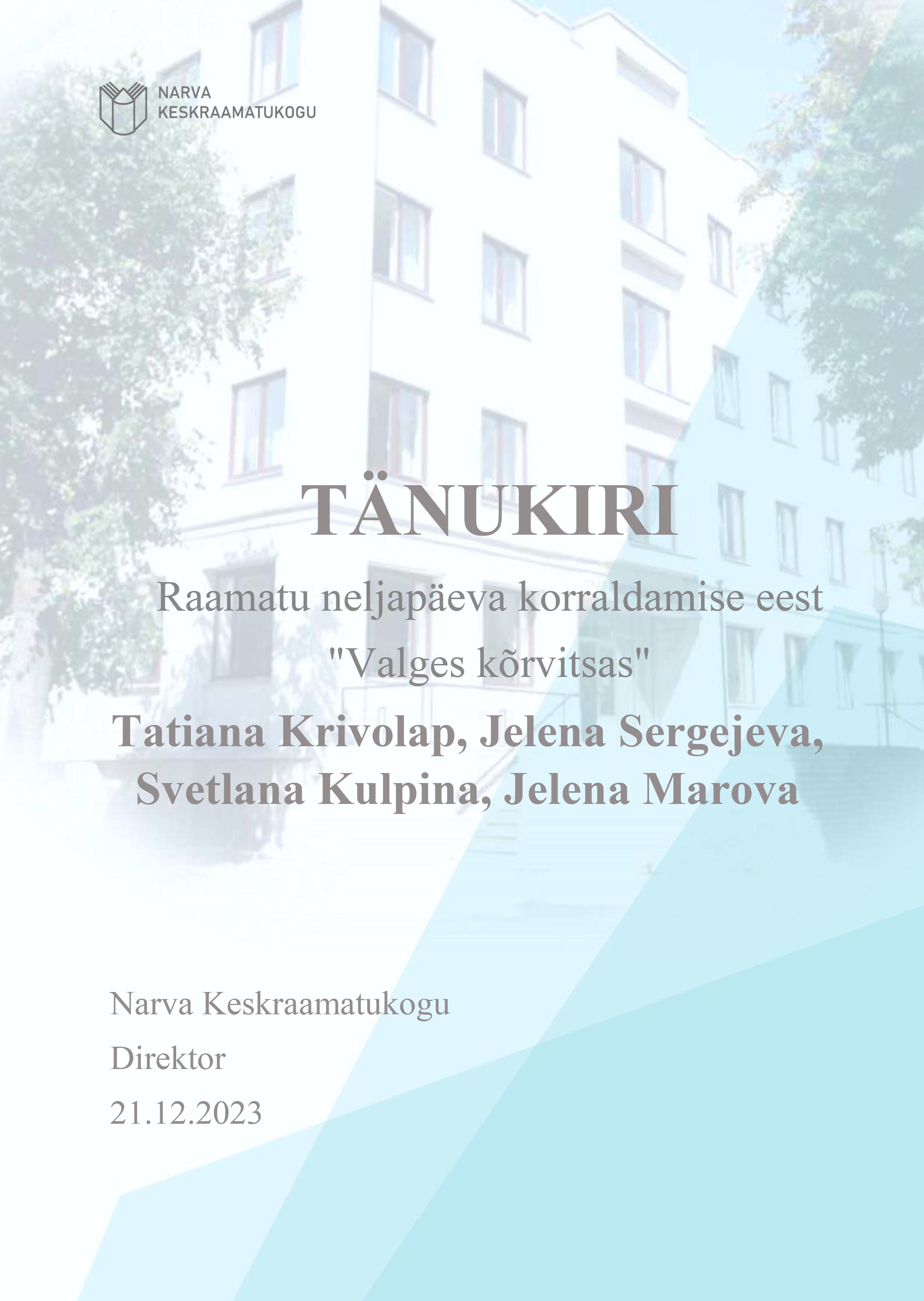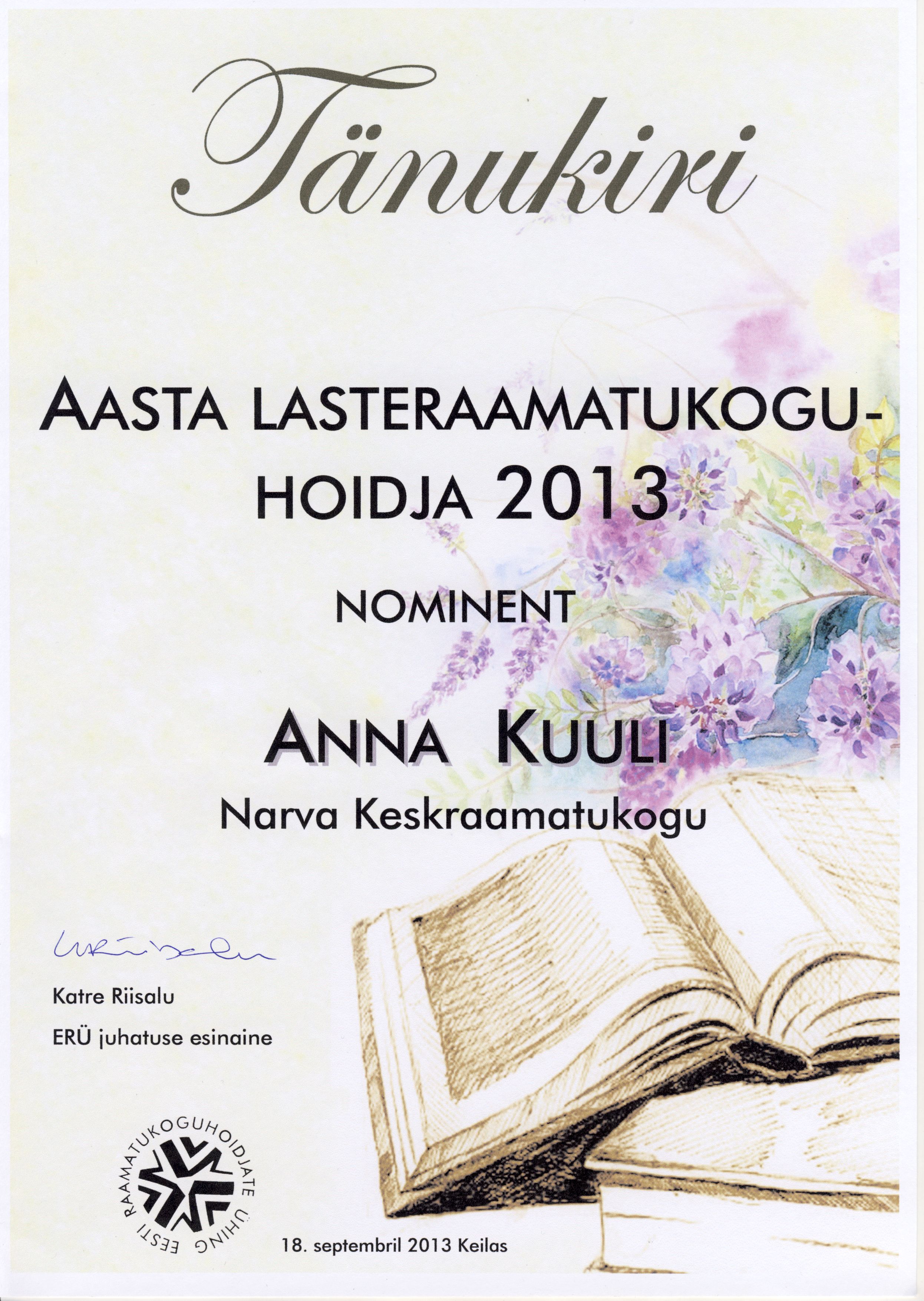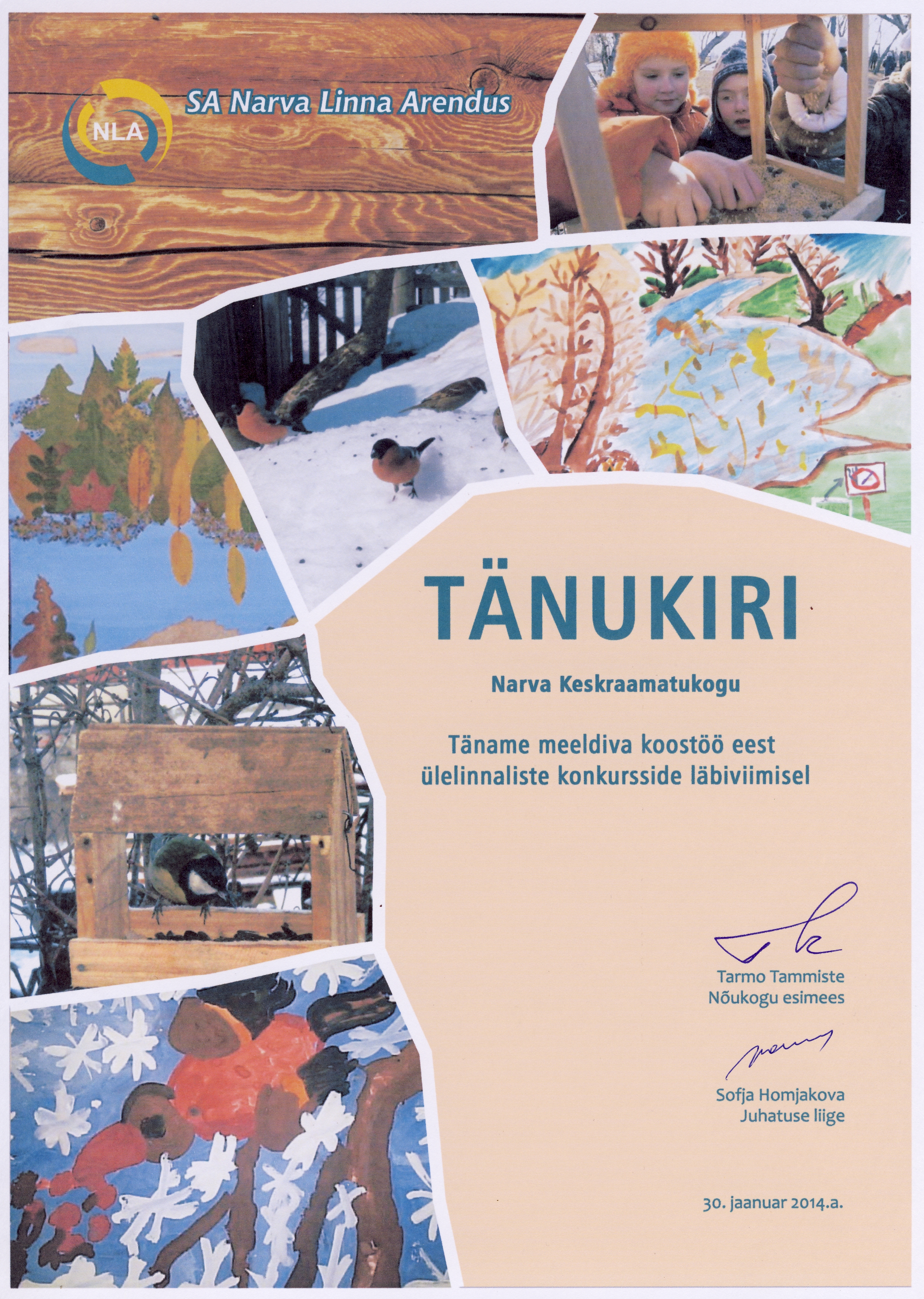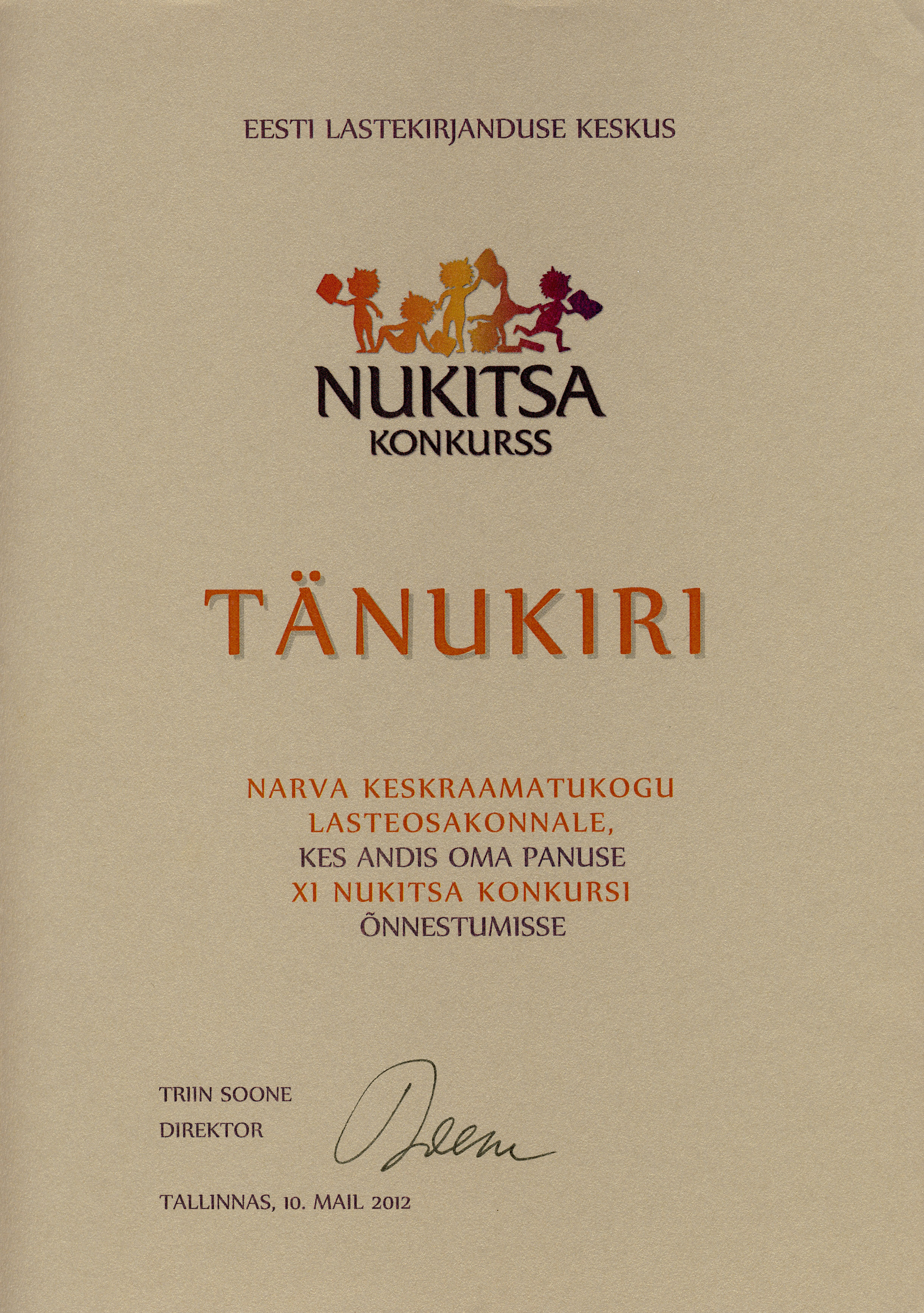 Narva Keskraamatukogu lasteosakonnale, kes andis oma panuse XI nukitsa konkursi õnnestumisse.