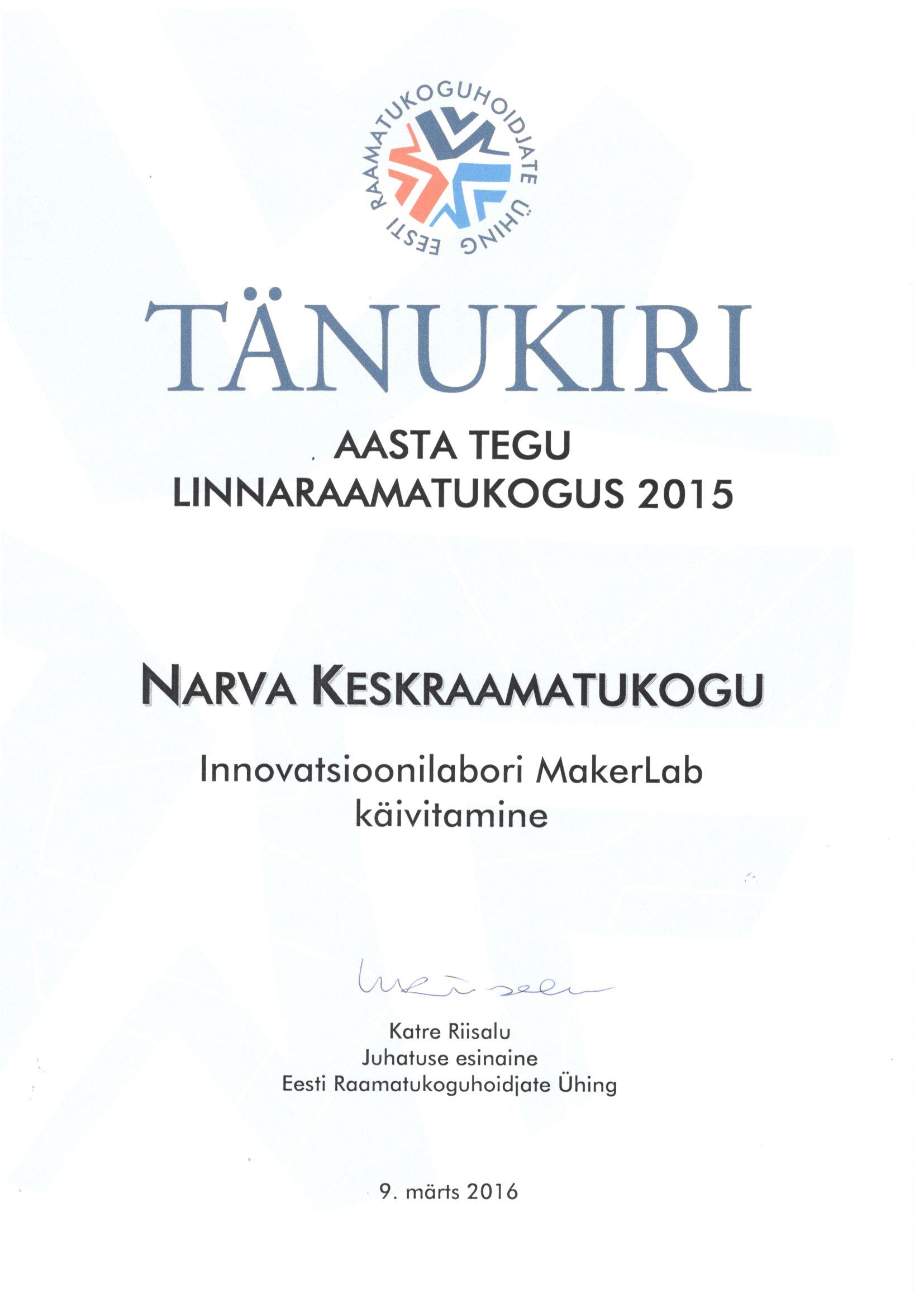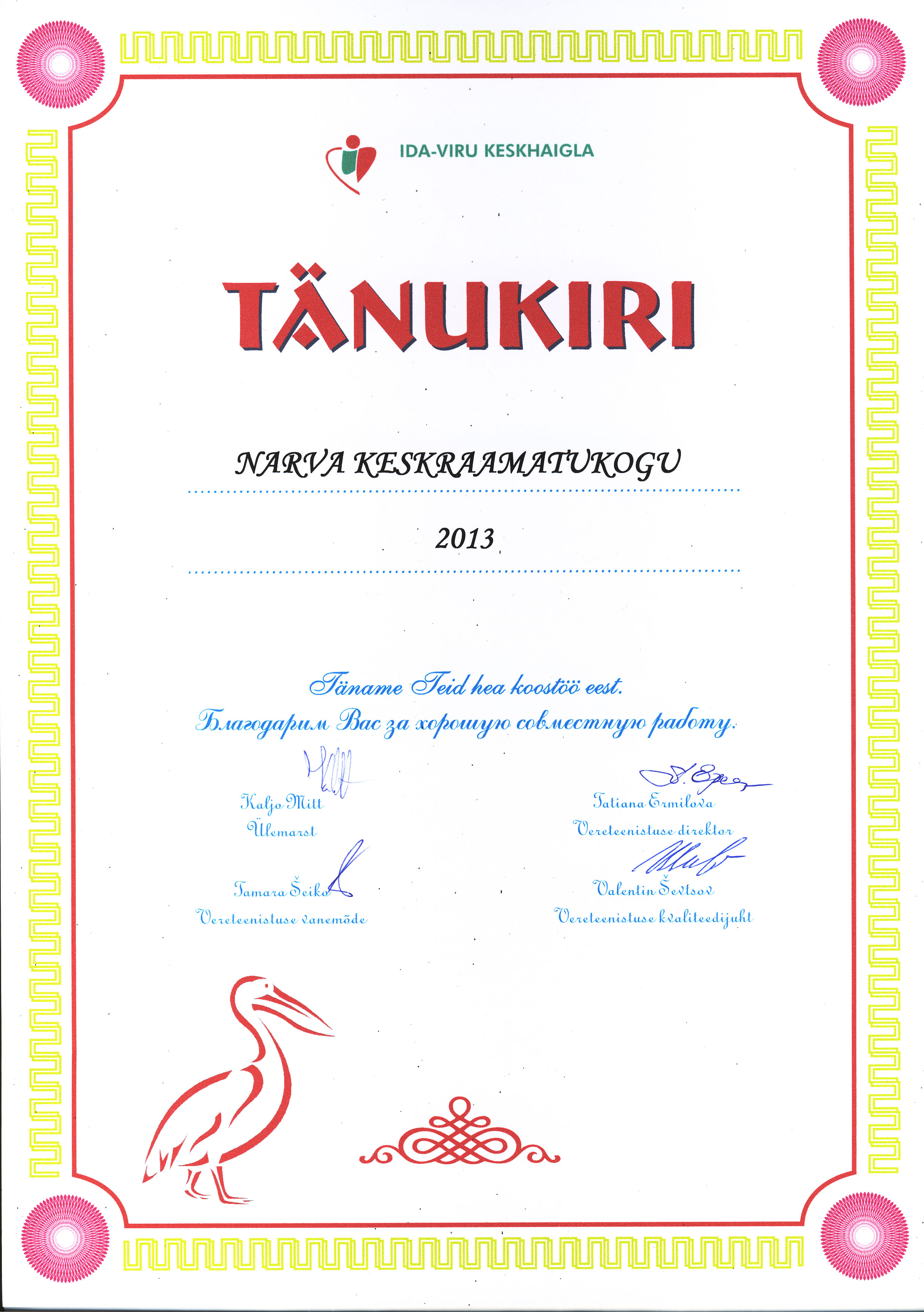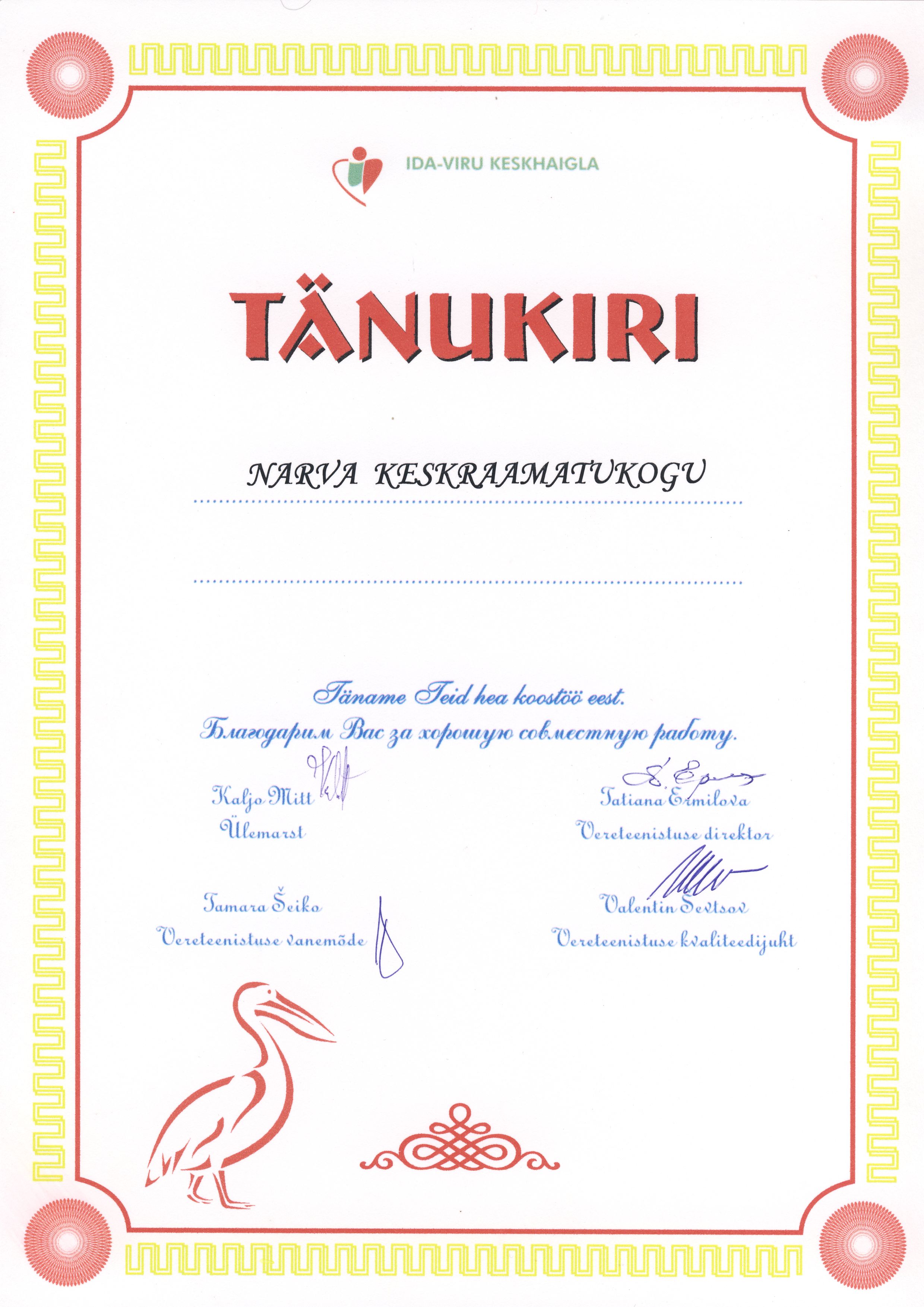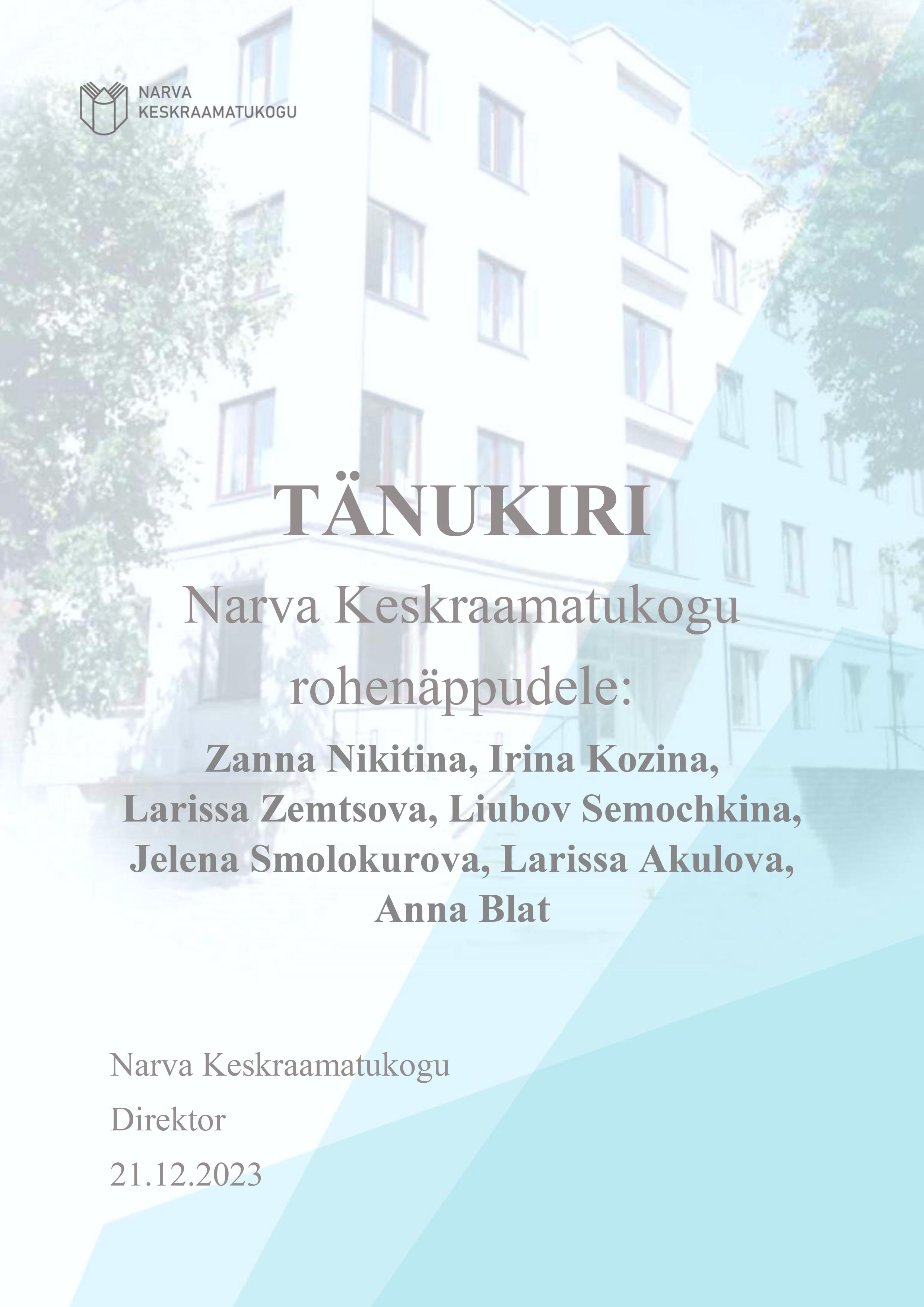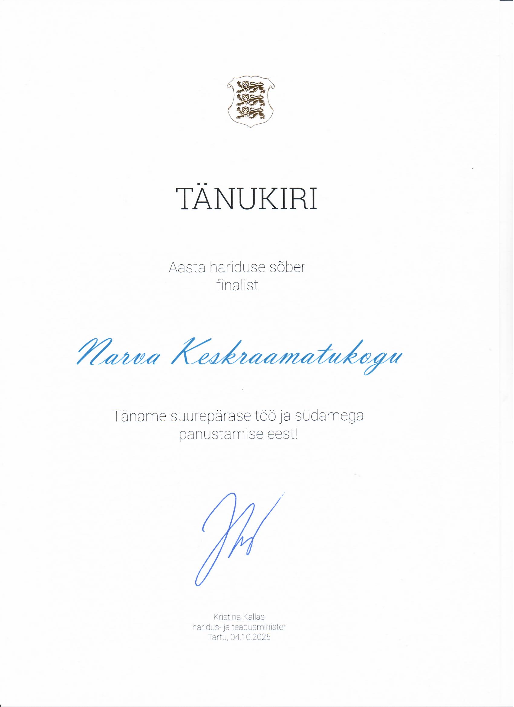 Narva Keskraamatukogu lasteosakonnale, kes andis oma panuse XI nukitsa konkursi õnnestumisse.