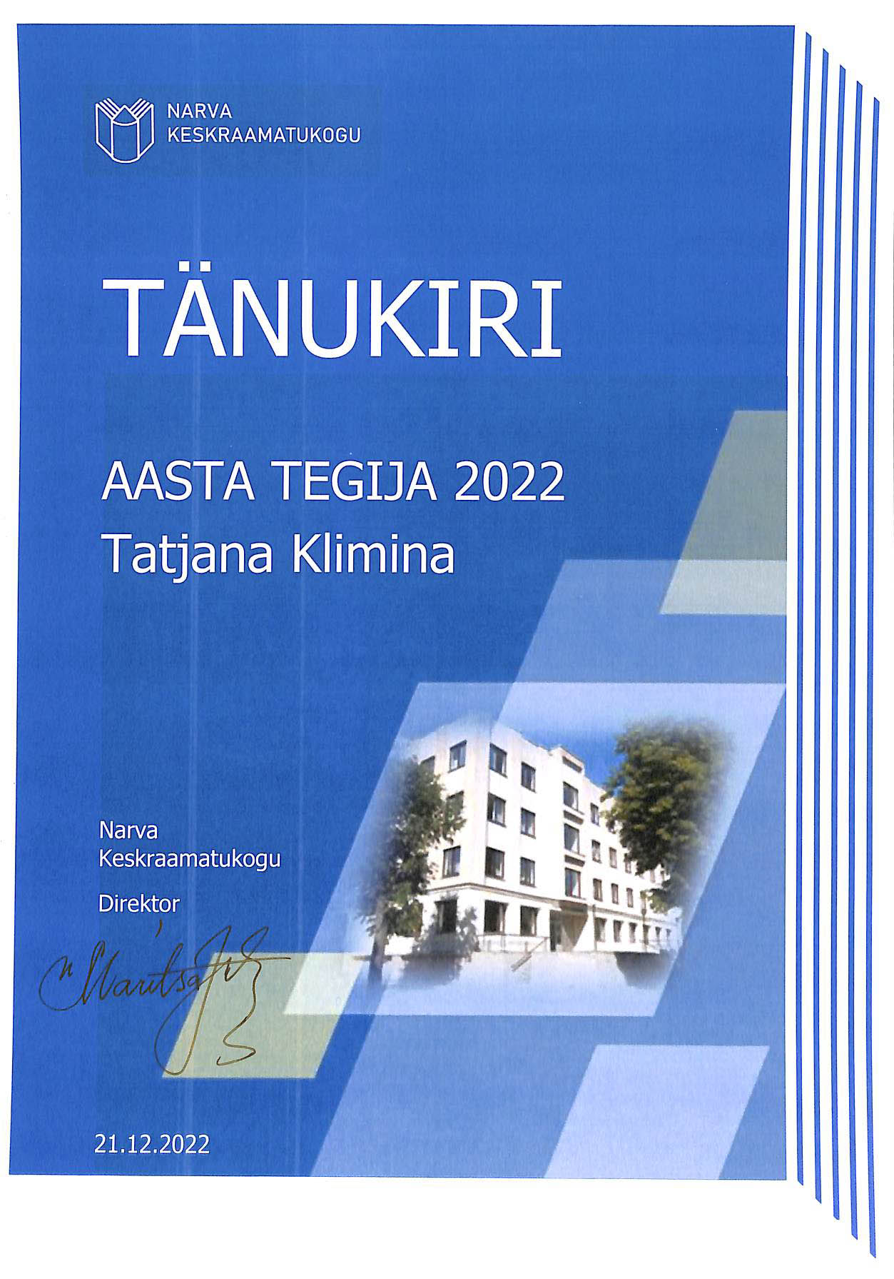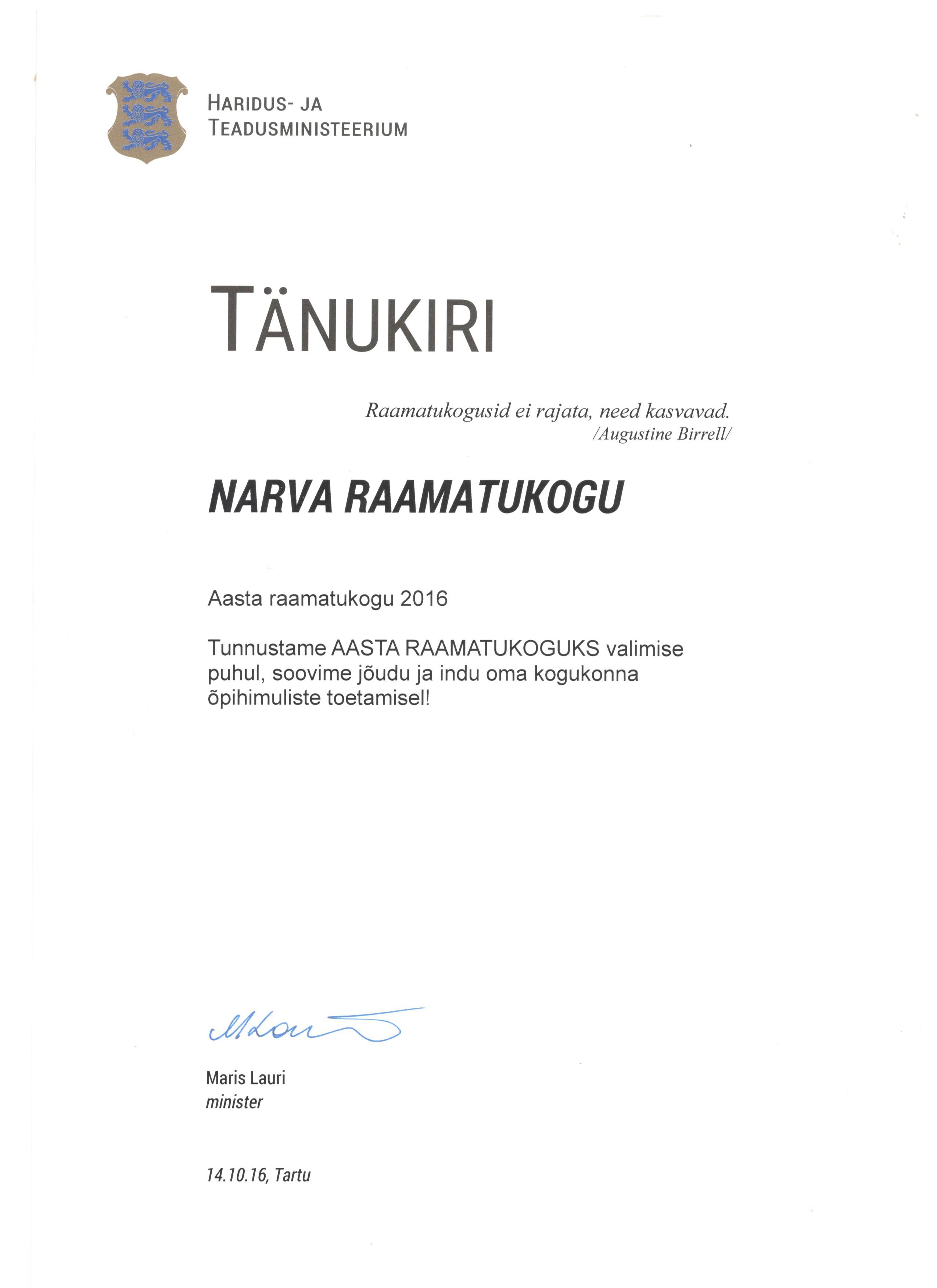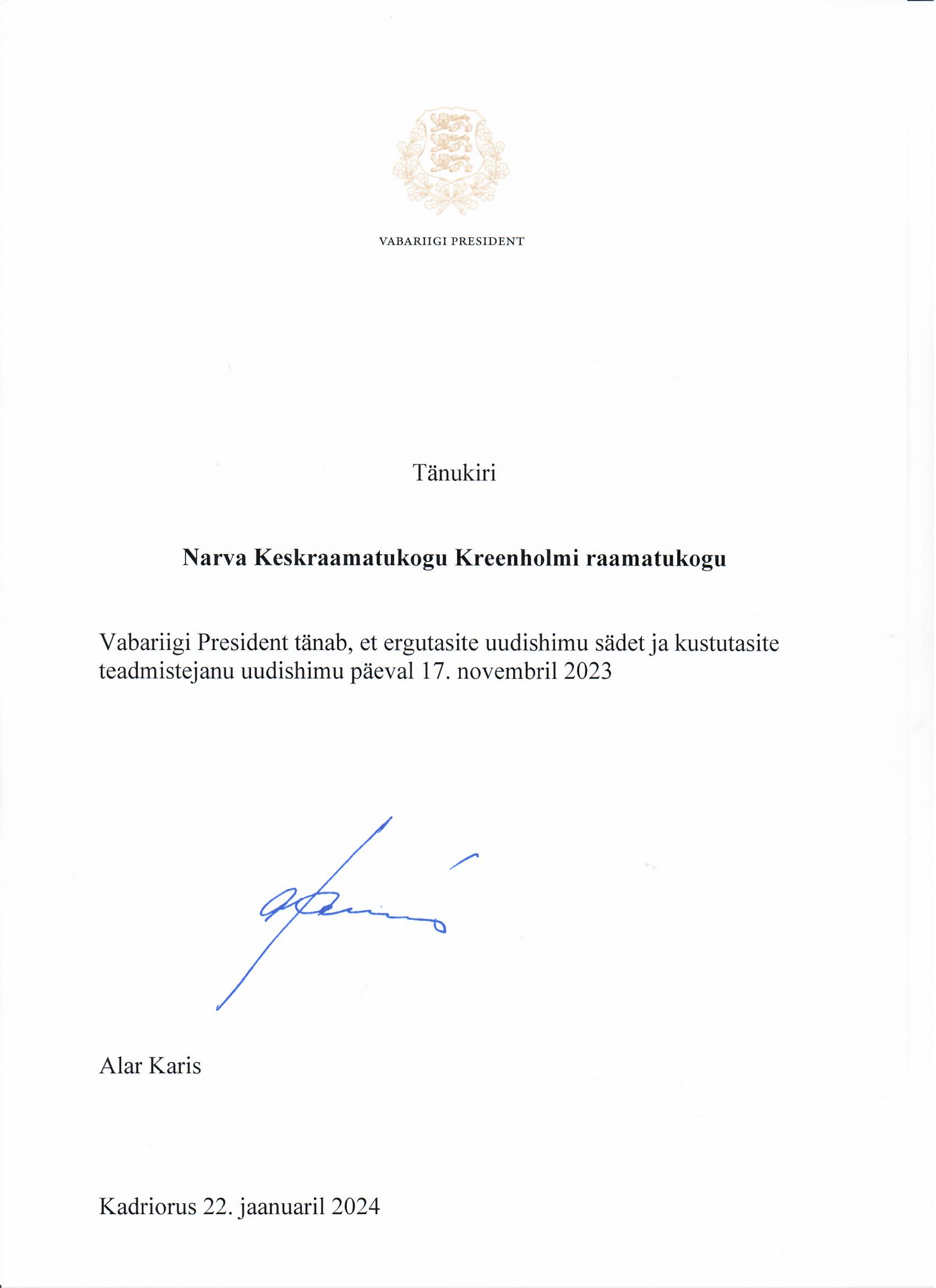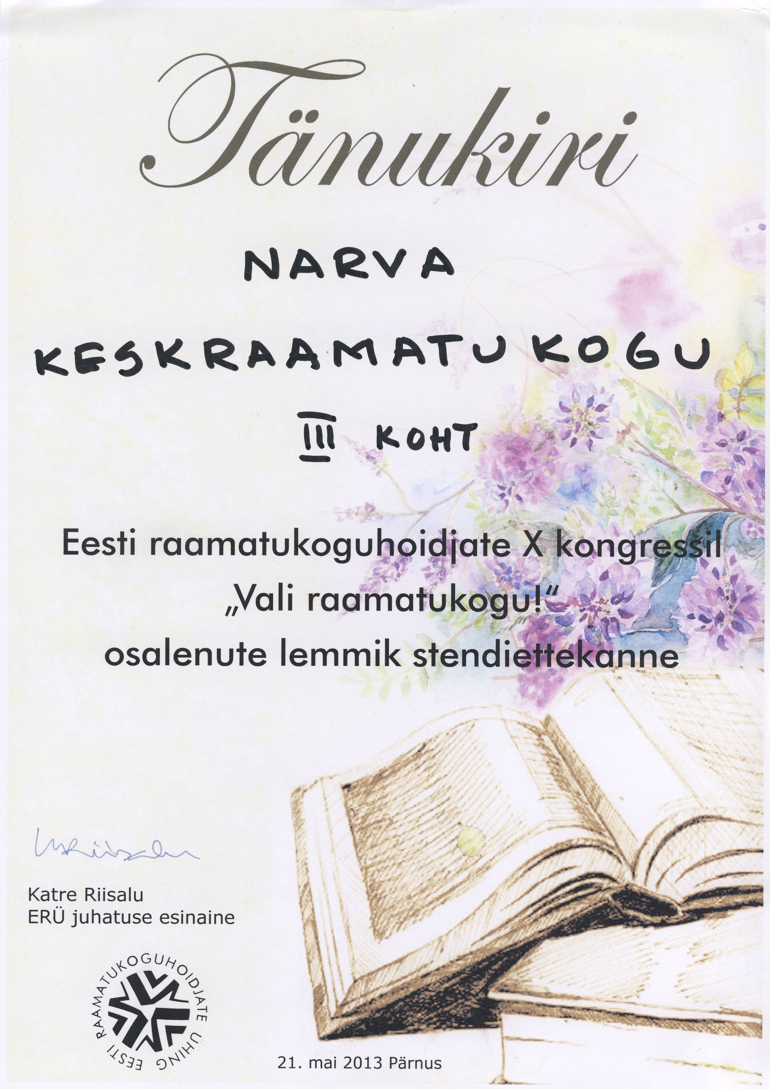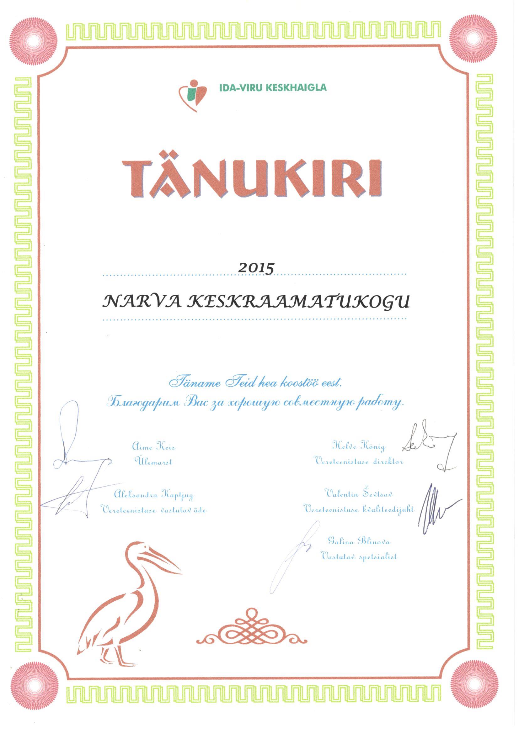Narva Keskraamatukogu lasteosakonnale, kes andis oma panuse XI nukitsa konkursi õnnestumisse.