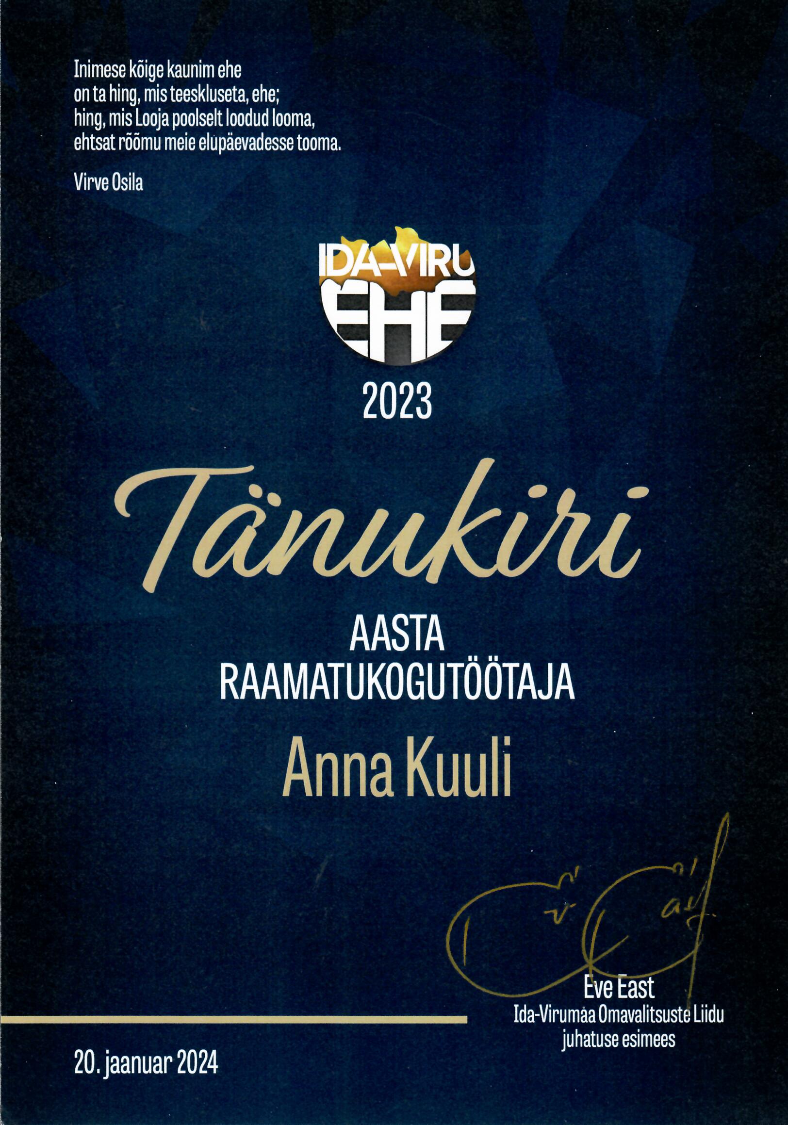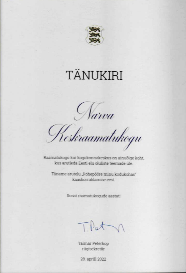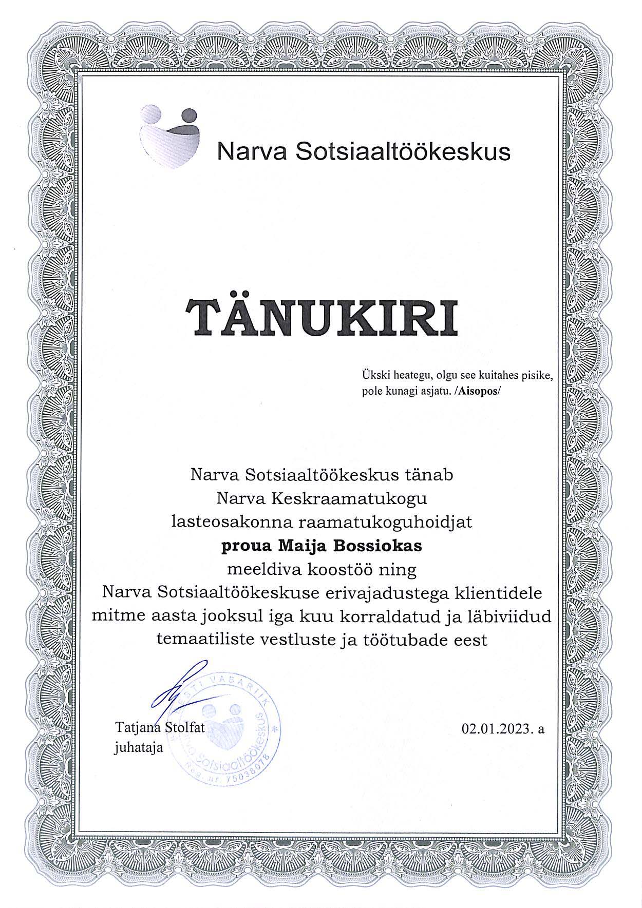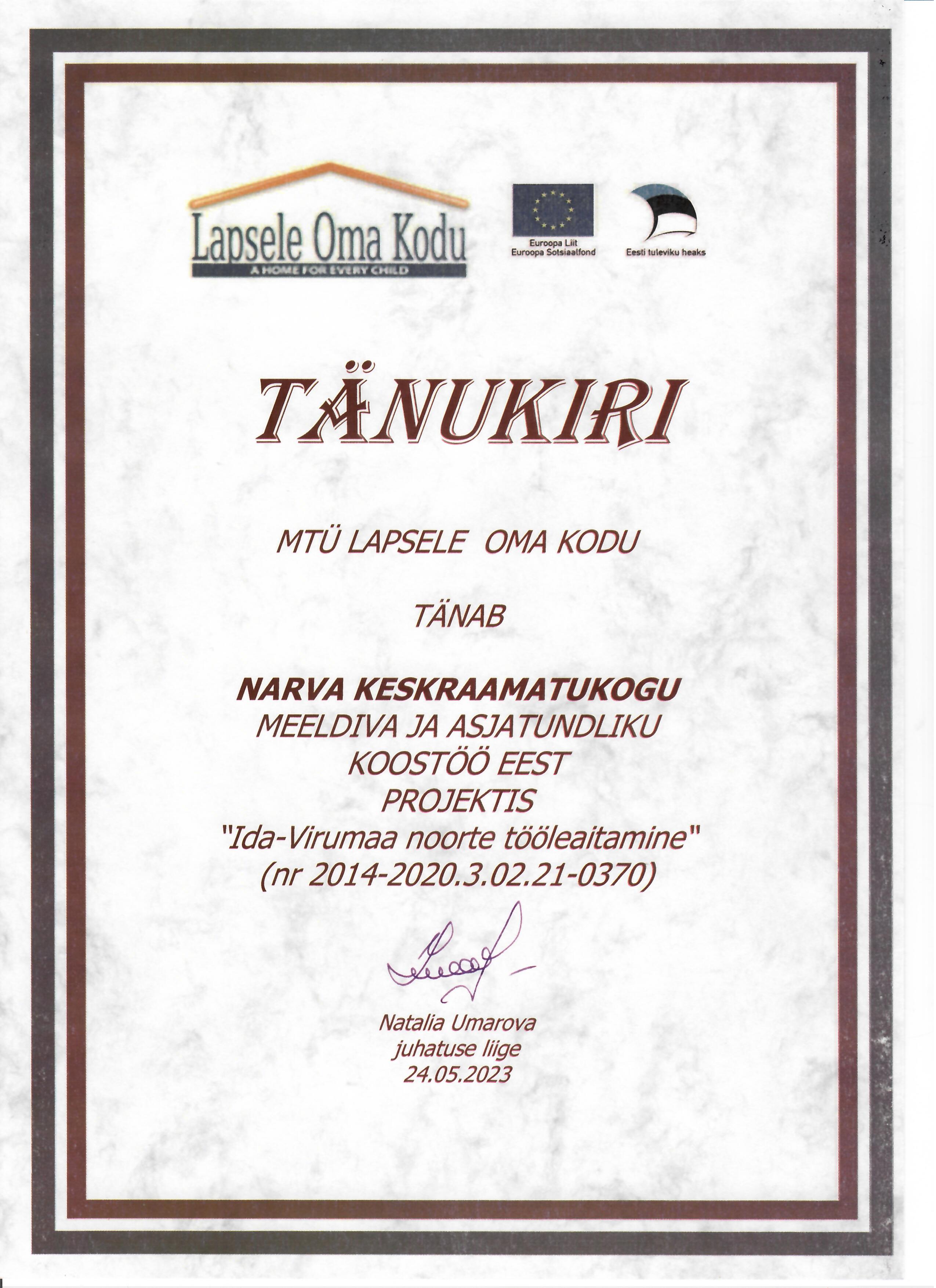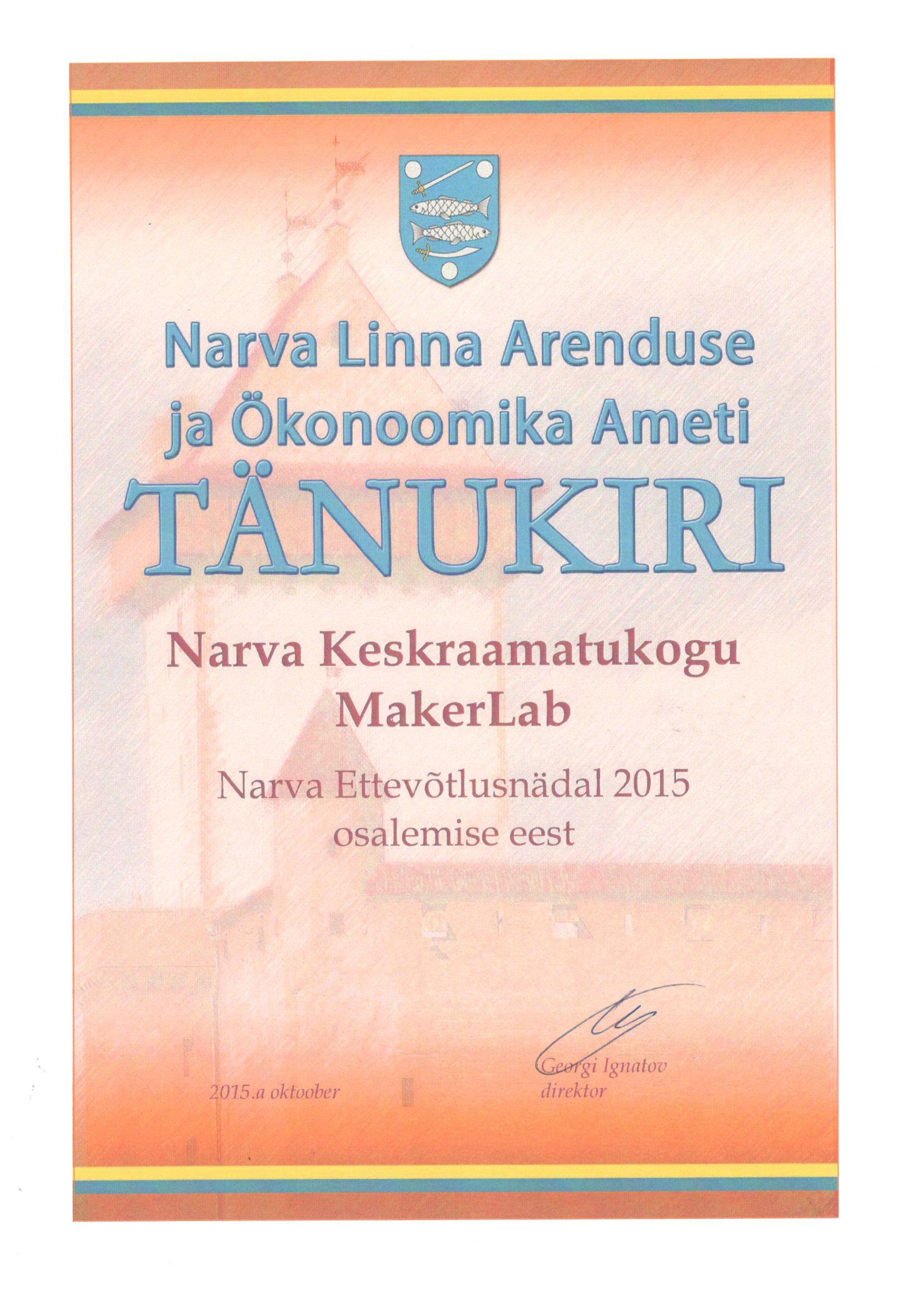 Narva Keskraamatukogu lasteosakonnale, kes andis oma panuse XI nukitsa konkursi õnnestumisse.