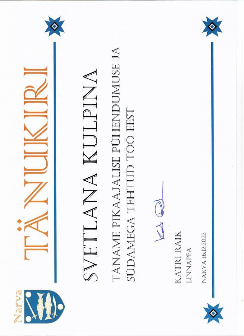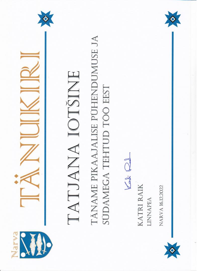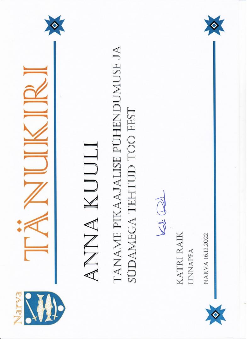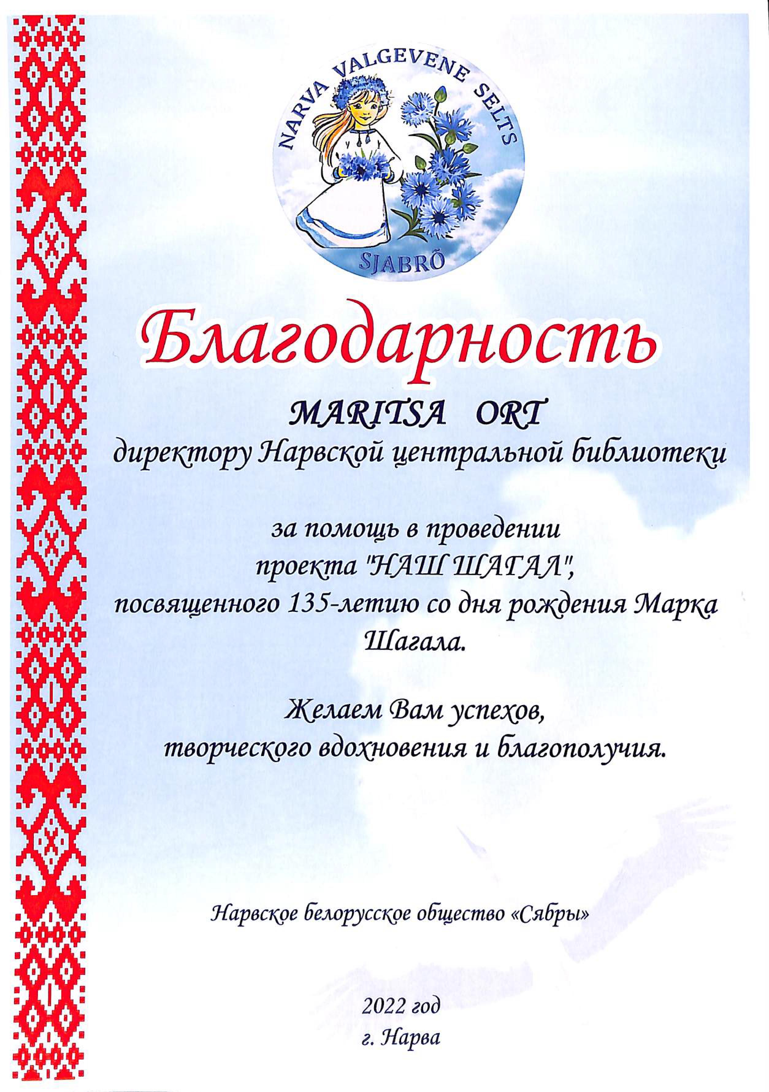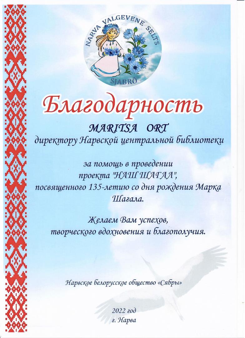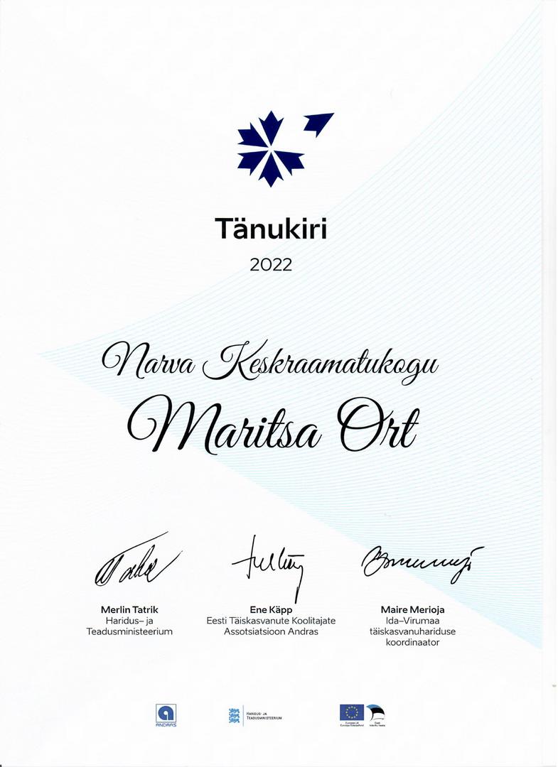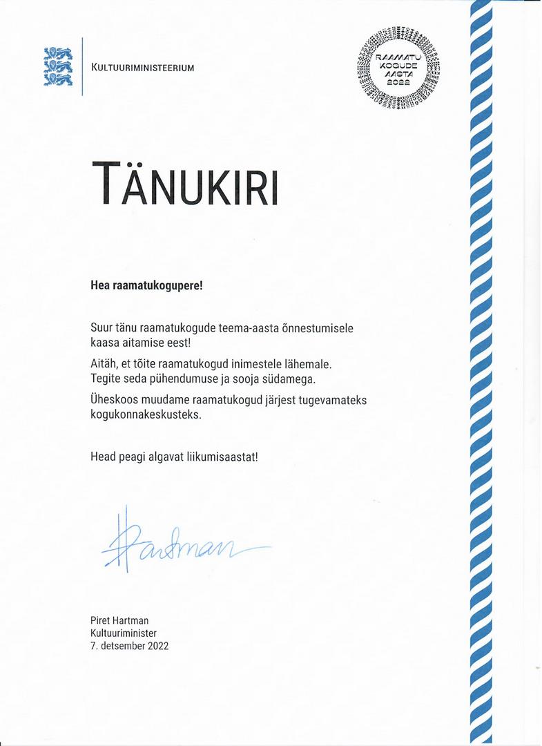 Narva Keskraamatukogu lasteosakonnale, kes andis oma panuse XI nukitsa konkursi õnnestumisse.
