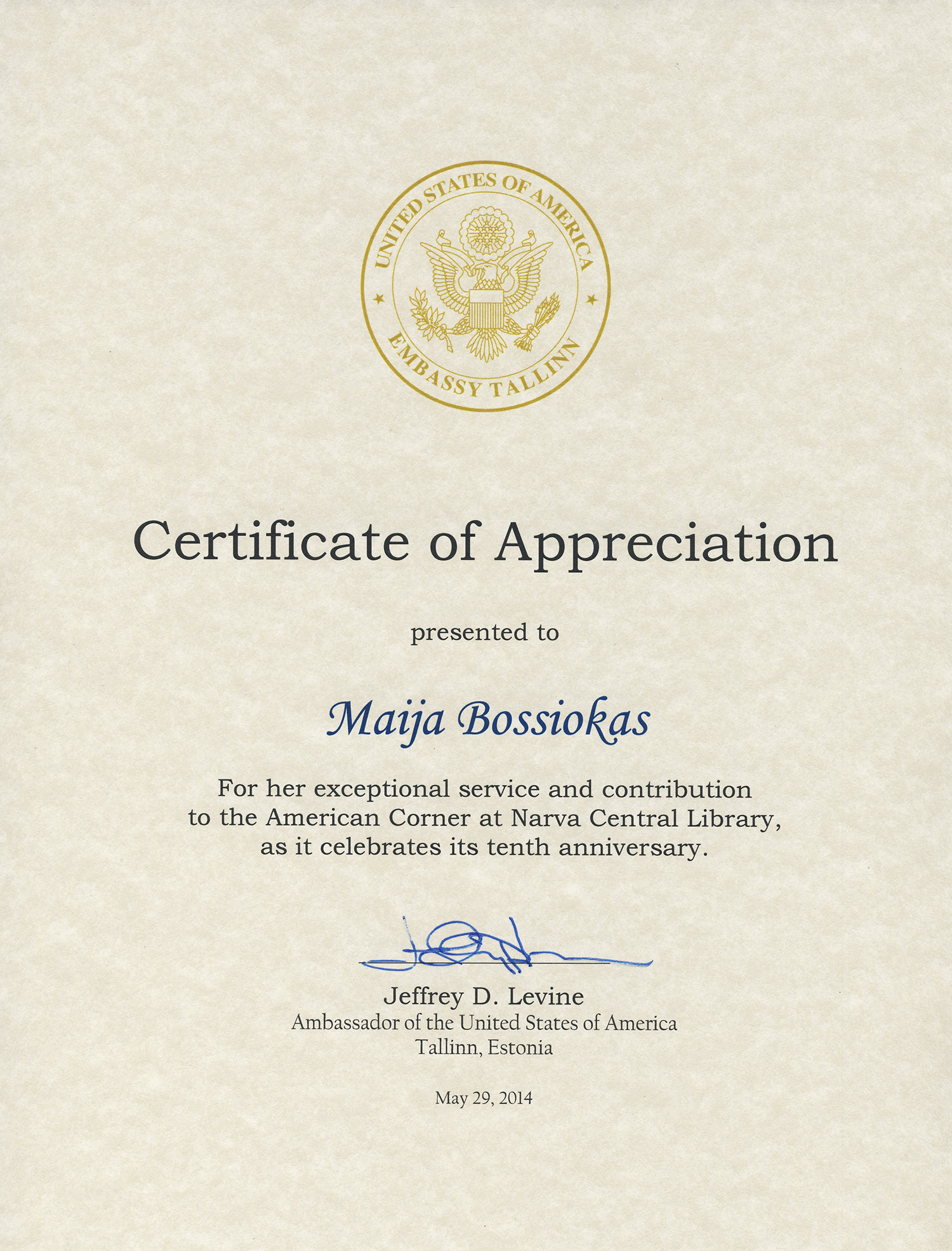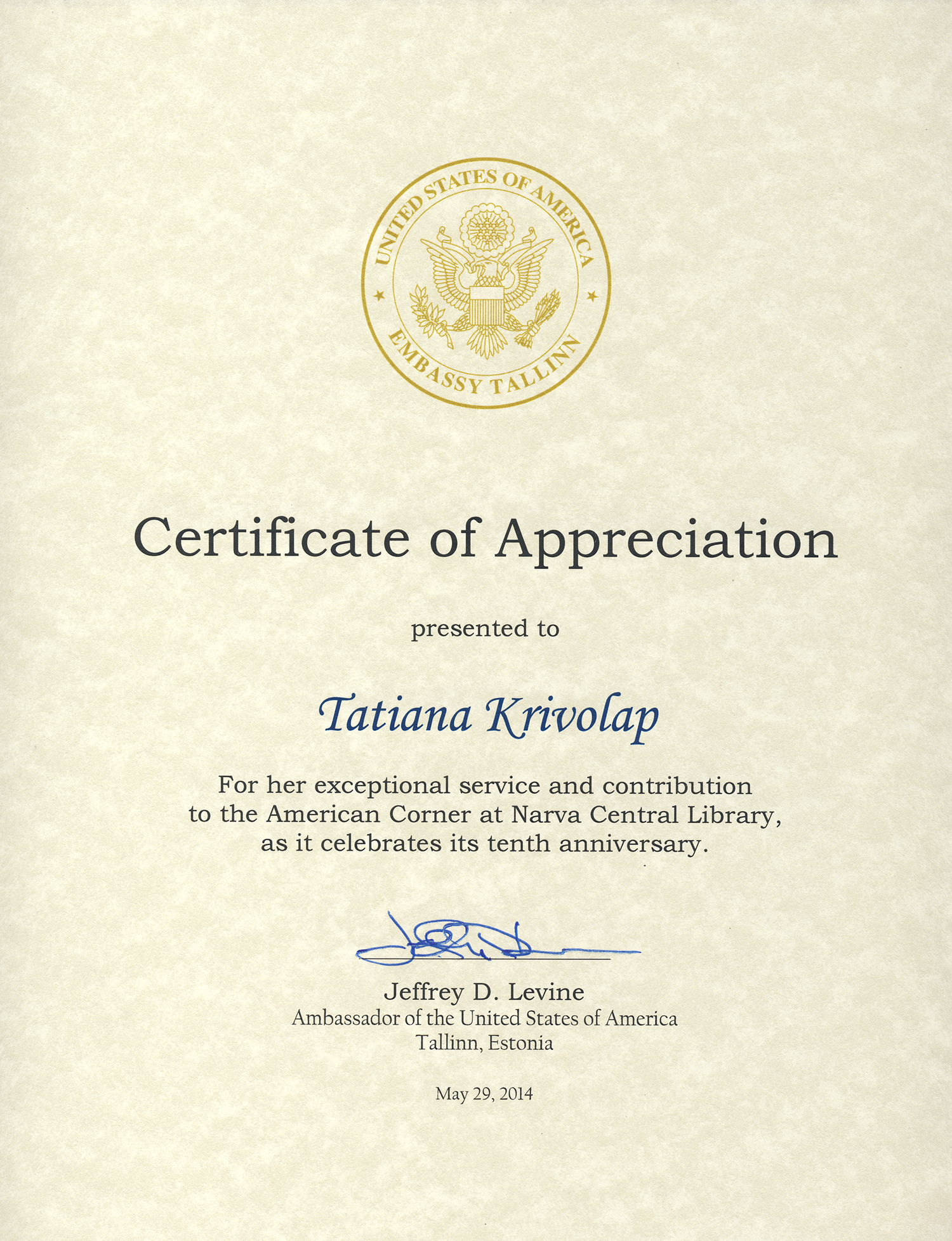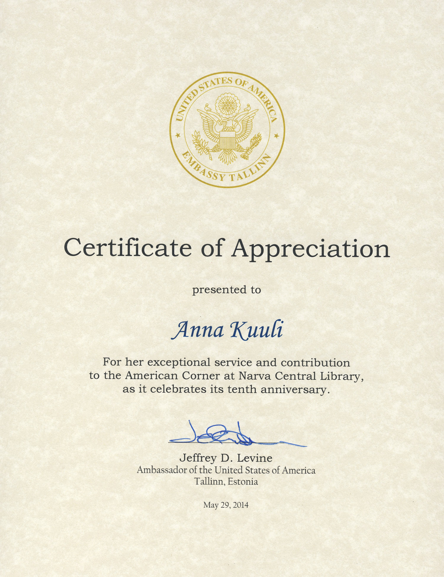 Ameerika Ühendriikide Suursaatkonna tänukiri