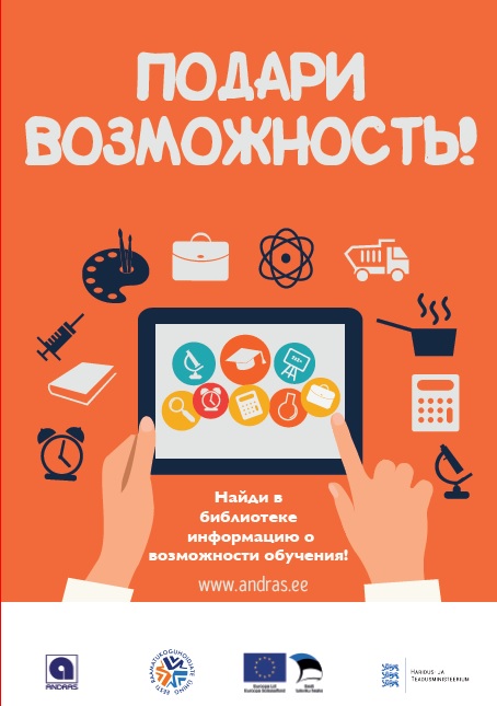 5-15 декабря во всех библиотеках Эстонии проходит акция «Подари возможность», организованная эстонской Ассоциацией преподавателей взрослых ANDRAS. Цель акции – познакомить жителей Эстонии возраста 18+ с различными возможностями обучения.