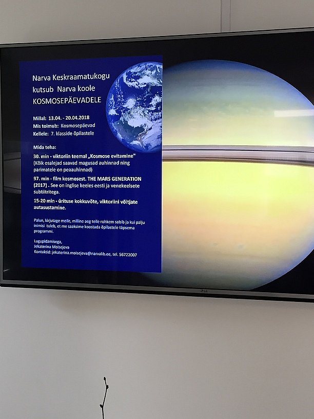 Дополнительная информация и бронирование помещения по тел. 3592415 или tehnika@narvalib.ee