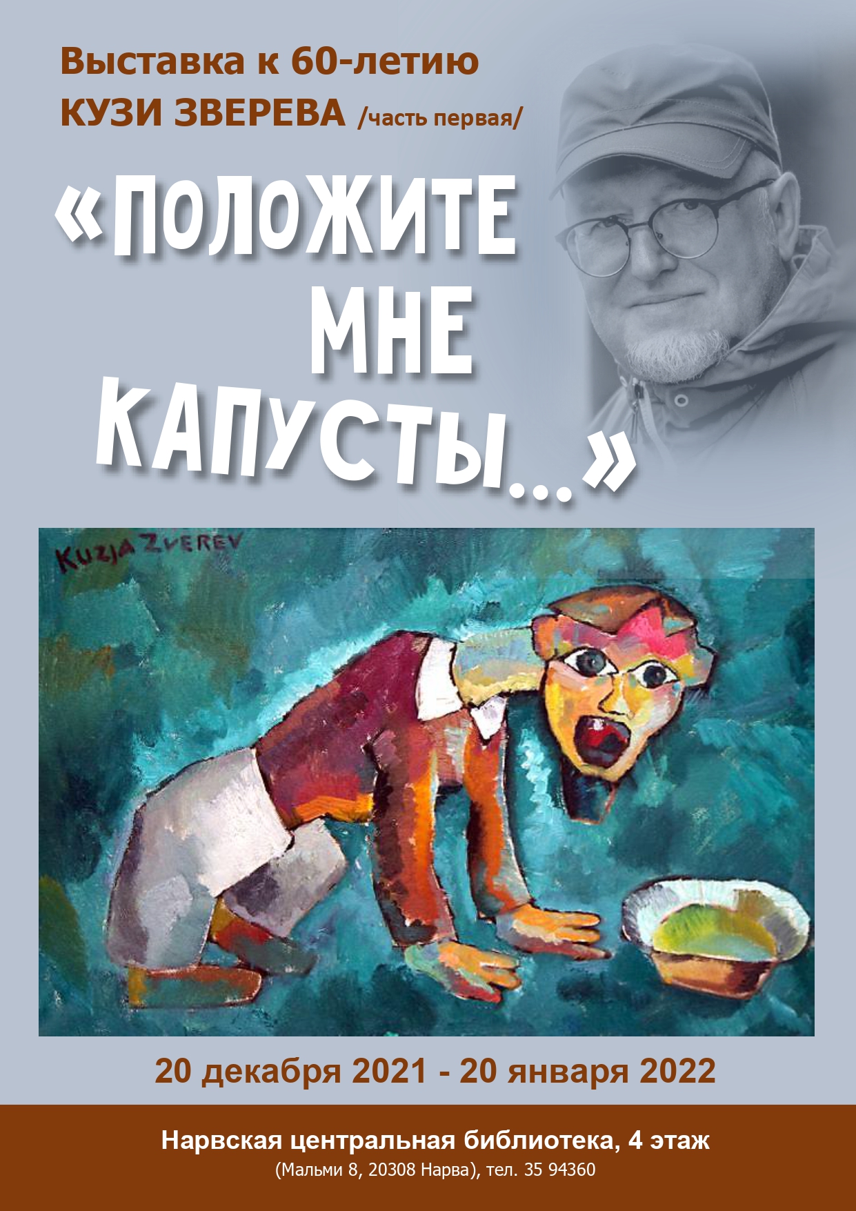 C 20.12.2021 в выставочном зале Нарвской центральной библиотеки открыта выставка ранних работ «Положите мне капусты...» художника Кузи Зверева (Владислава Кузнецова).