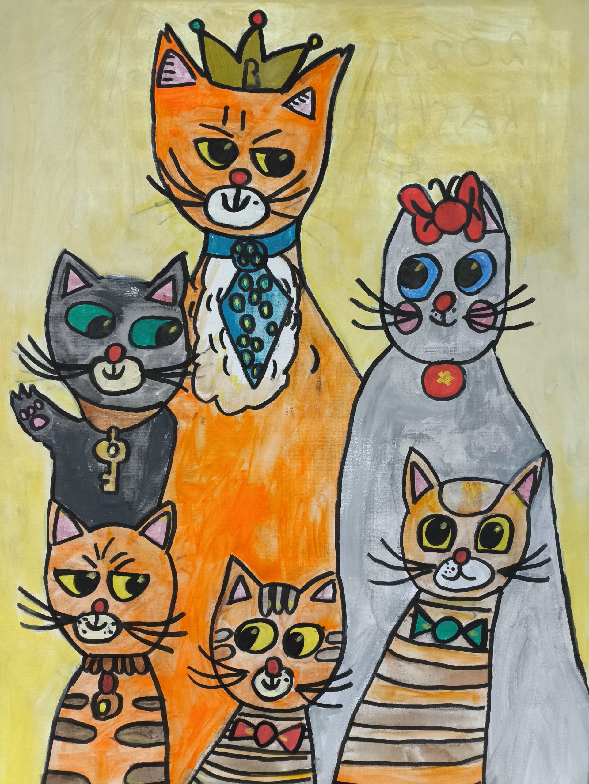 Главная тема выставки — коты. Яркие, характерные и очень разные, они стали настоящими героями рисунков. Многие образы вдохновлены домашними питомцами, которые живут в семье автора.